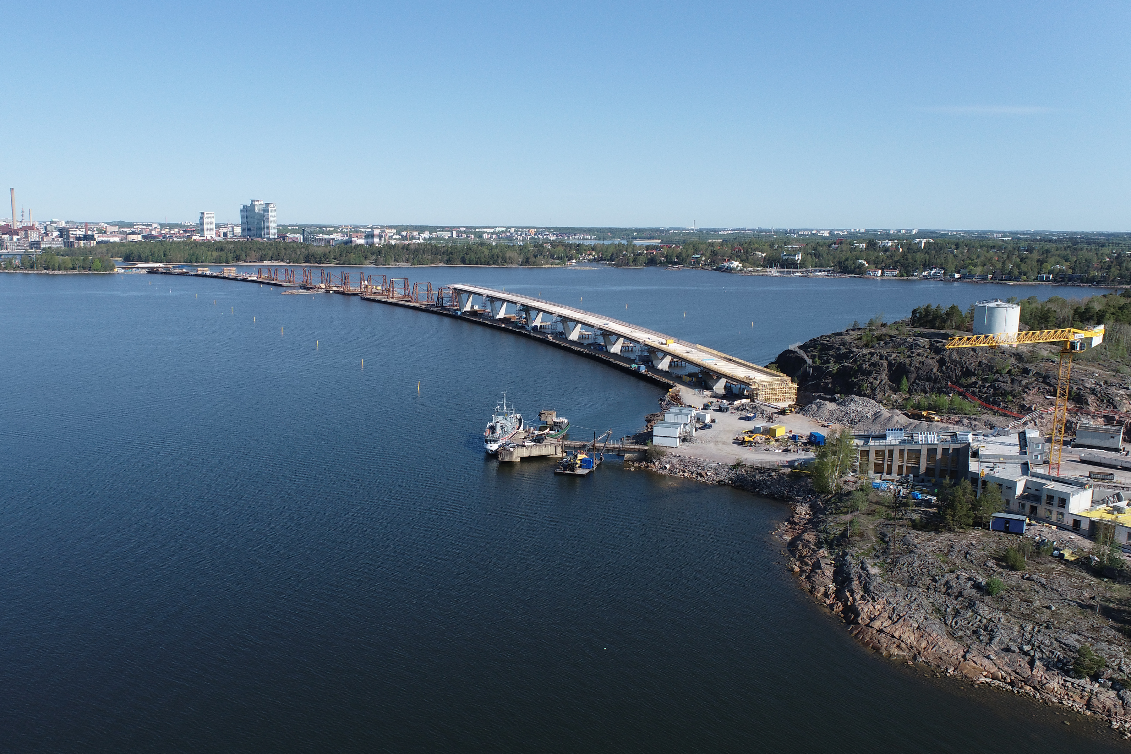 Kruunuvuorensilta toukokuu 2023, keskeneräisenä Helsingin edustalla.