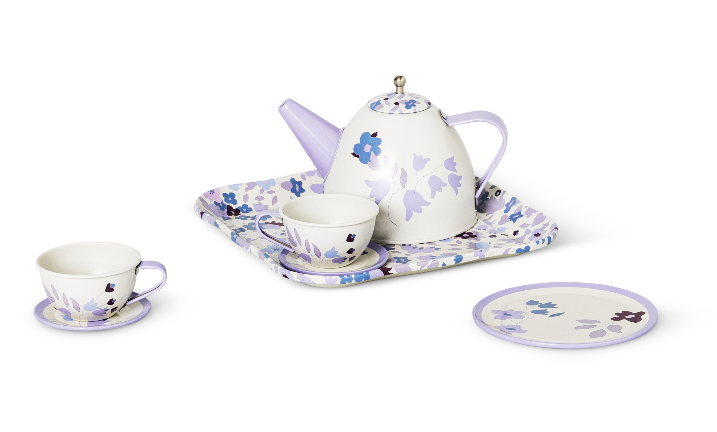 Metallinen teesetti tuotenumerolla 3058431.Takaisinveto koskee kaikkia tuote-eriä. Myyty heinäkuusta 2024 alkaen Flying Tiger Copenhagen -myymälöissä.