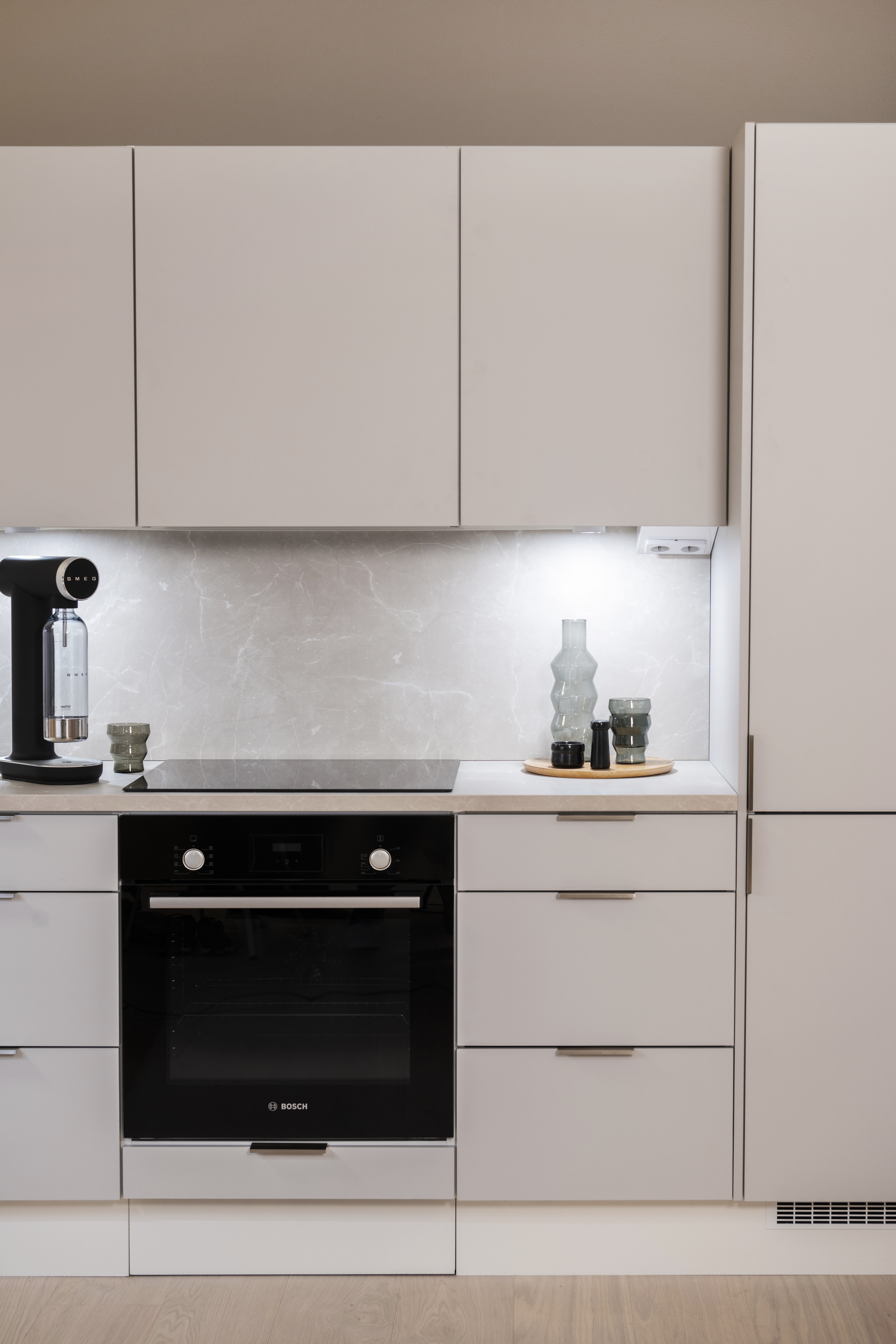 Vionan ovet on saatavilla täysin haluttujen mittojen mukaan, joten Viona istuu yhteen minkä tahansa muun keittiövalmistajan runkoon.