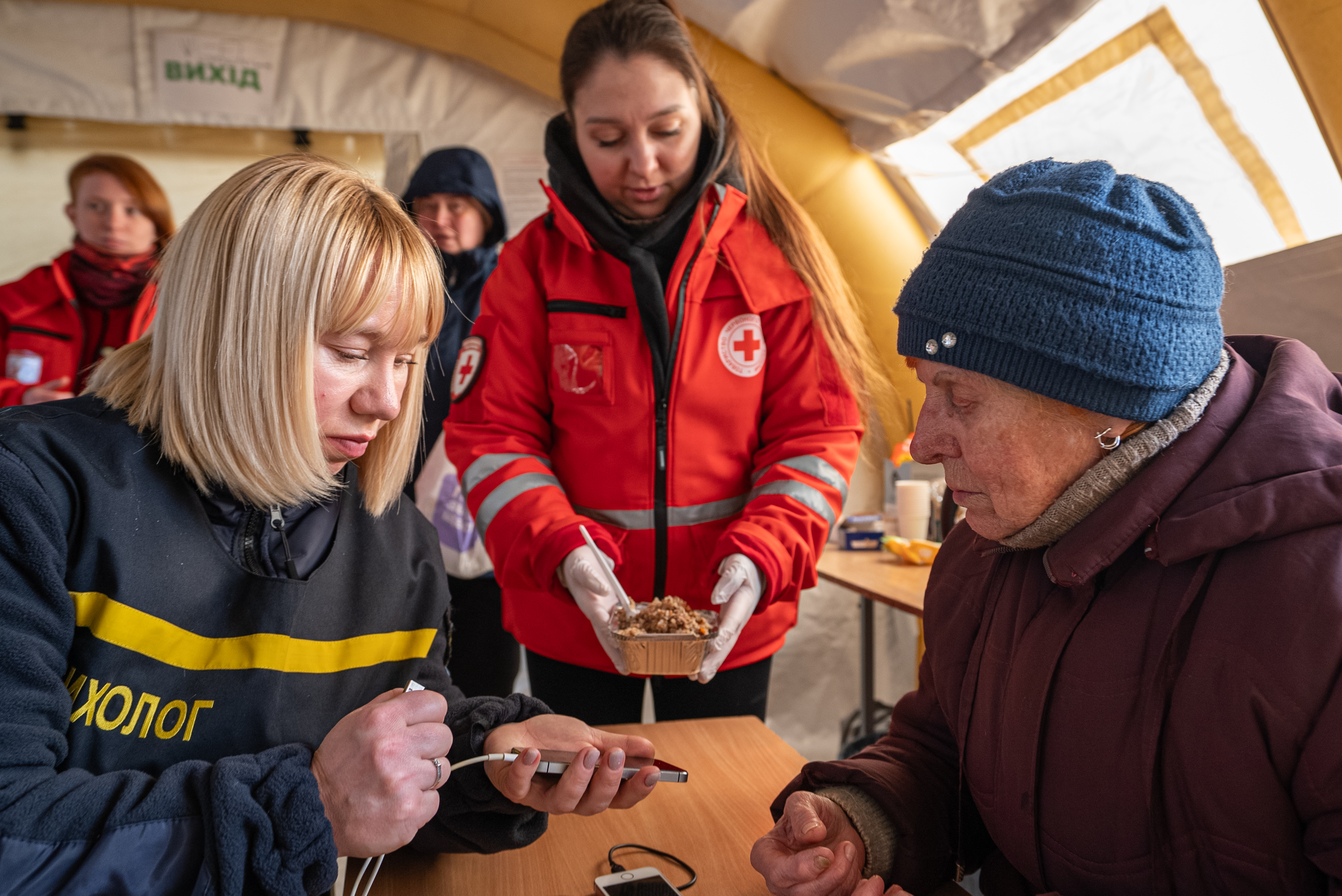 Ukrainan Punainen Risti auttaa liikkuvissa lämmityspisteissä noin 1 500 ihmistä joka päivä. Lisäksi se on toimittanut generaattoreita turvaamaan varavoiman saantia energiakatkosten aikana.