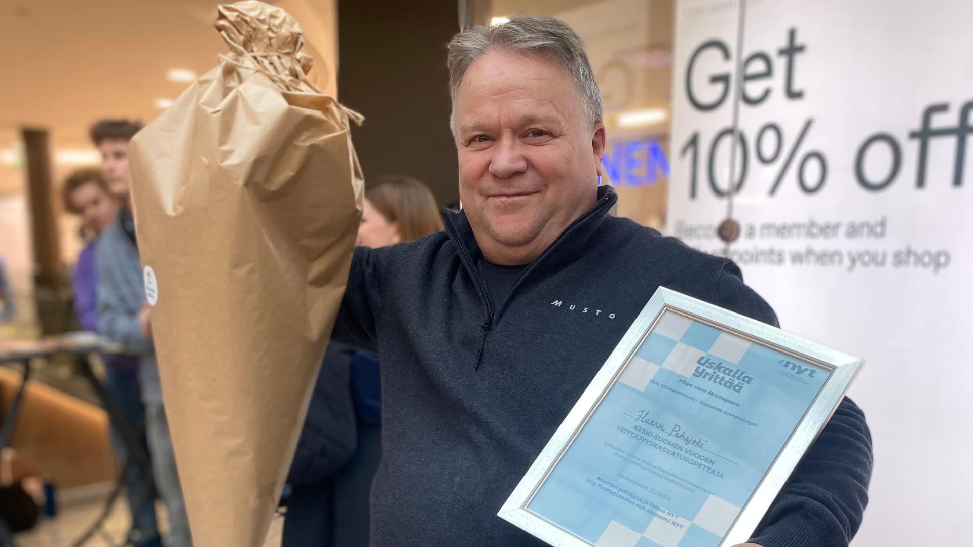 Keski-Suomen aluetapahtumassa jaettiin myös tunnustus ansioituneesta työstä yrittäjyyskasvatuksen parissa, jonka sai Hannu Pahajoki Ammattiopisto Spesiasta, Jyväskylästä.