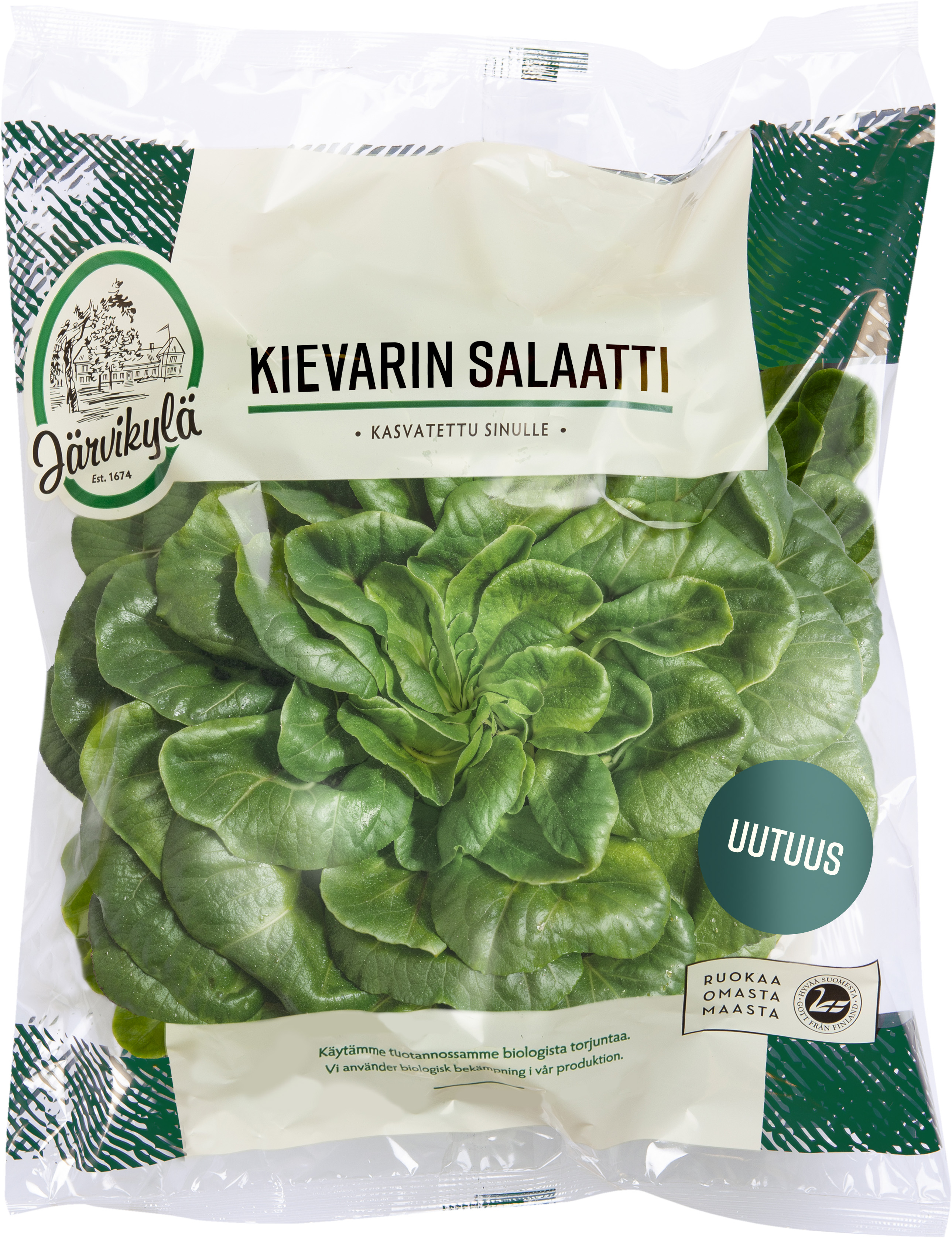 Uusi Järvikylän Kievarin salaatti on suomalainen pussiin pakattu kaunis ja mehevä salaatti. Uutuus on helppokäyttöinen: herkullisen makuiset ja napakat salaatinlehdet irtoavat näppärästi, ja ne ovat pesemättä käyttövalmiit.