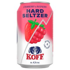 KOFF Hard Seltzer Strawberry-Raspberry 4,5% on raikas ja vähäkalorinen alkoholijuomasekoitus, jonka maussa yhdistyy maukas mansikka ja vadelma sekä terästetty hiilihapotettu vesi.