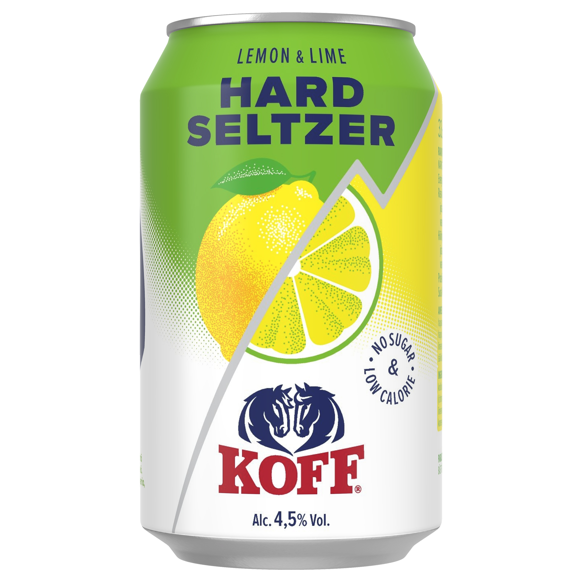 KOFF Hard Seltzer Lemon-Lime 4,5% on raikas ja vähäkalorinen alkoholijuomasekoitus, jonka maussa yhdistyy virkistävä sitruuna ja lime sekä terästetty hiilihapotettu vesi.
