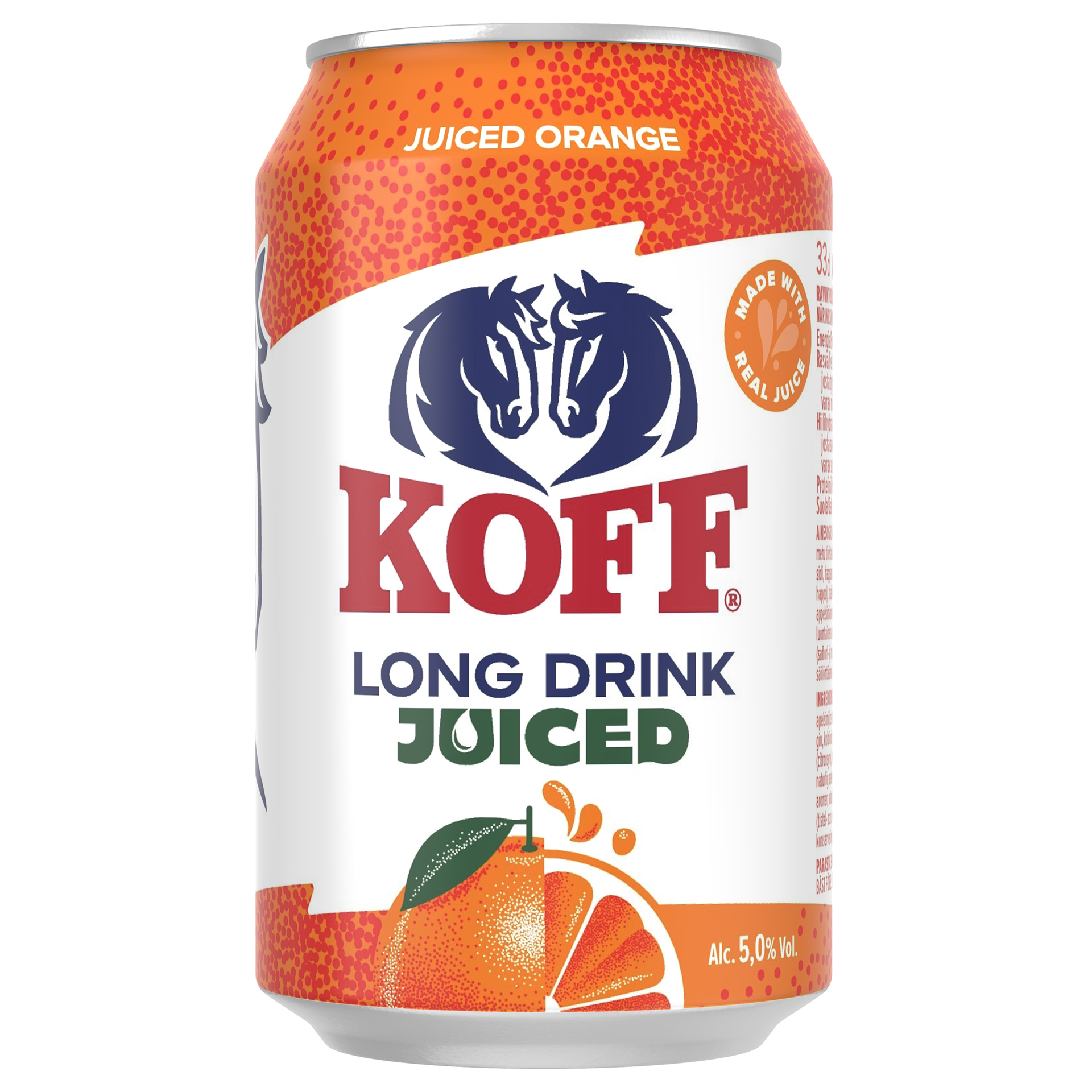 KOFF Long Drink Juiced Orange 5,0% on mehukas ja hedelmäinen appelsiinin makuinen lonkero. Maku tulee aidosta hedelmämehusta, appelsiini on suosittu ja helposti lähestyttävä maku. LUE LISÄÄ LONKEROISTA.