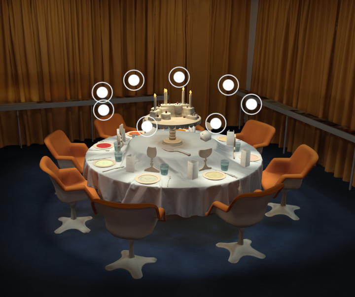 I den virtuella miljön kan besökaren slå sig ner vid bordet och utforska teman som samarbete, skuld, arbete, framtid och gränser. Animationer och ett interaktivt samtals-spel uppmuntrar till reflektion kring relationen mellan Finland och Sverige ur olika perspektiv.