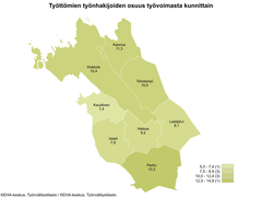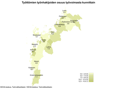Työttömien työnhakijoiden määrä nousi molemmissa Keski-Pohjanmaan maakunnan seutukunnissa vuoden takaiseen verrattuna. Työttömien määrä kasvoi Kaustisen seudulla 44 henkilöllä (+ 9 %) ja Kokkolan seudulla 183 henkilöllä (+ 8 %). Alhaisempi työttömyysaste oli Kaustisen seutukunnassa, 9,1 %.