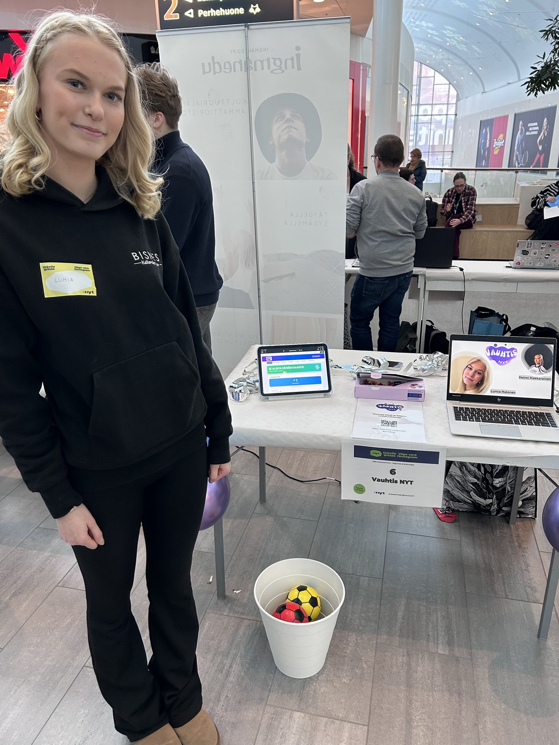 Yläkoulun ja toisen asteen opiskelijat esittelivät kehittämiään tuotteita ja palveluita Matkus Shopping Centerissä. Uskalla Yrittää -kilpailun finaaliin etenivät seuraavat NYT-yritykset: