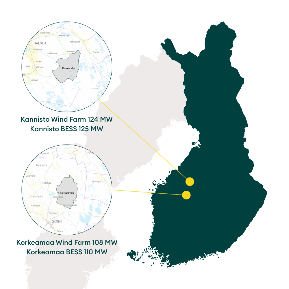 Energibolaget OX2 kompletterar sina vindkraftsprojekt i Kannisto och Korkeamaa, som fick investeringsbeslut i december, med energilagringsanläggningar med en total effekt på 235 MW (470 MWh) (Battery Energy Storage System, BESS).