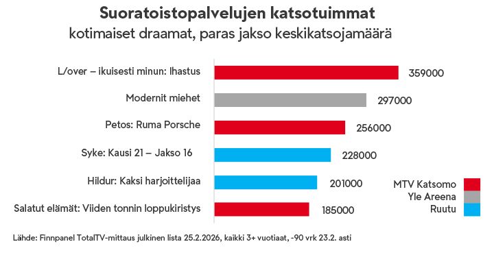 MTV:n draamaohjelmisto on koukuttanut alkuvuoden – suomalaisia puhuttanut psykologinen trilleri L/over – ikuisesti minun on tavoittanut jo 1,6 miljoonaa katsojaa11.2.2026 14:00:00 EET | Tiedote