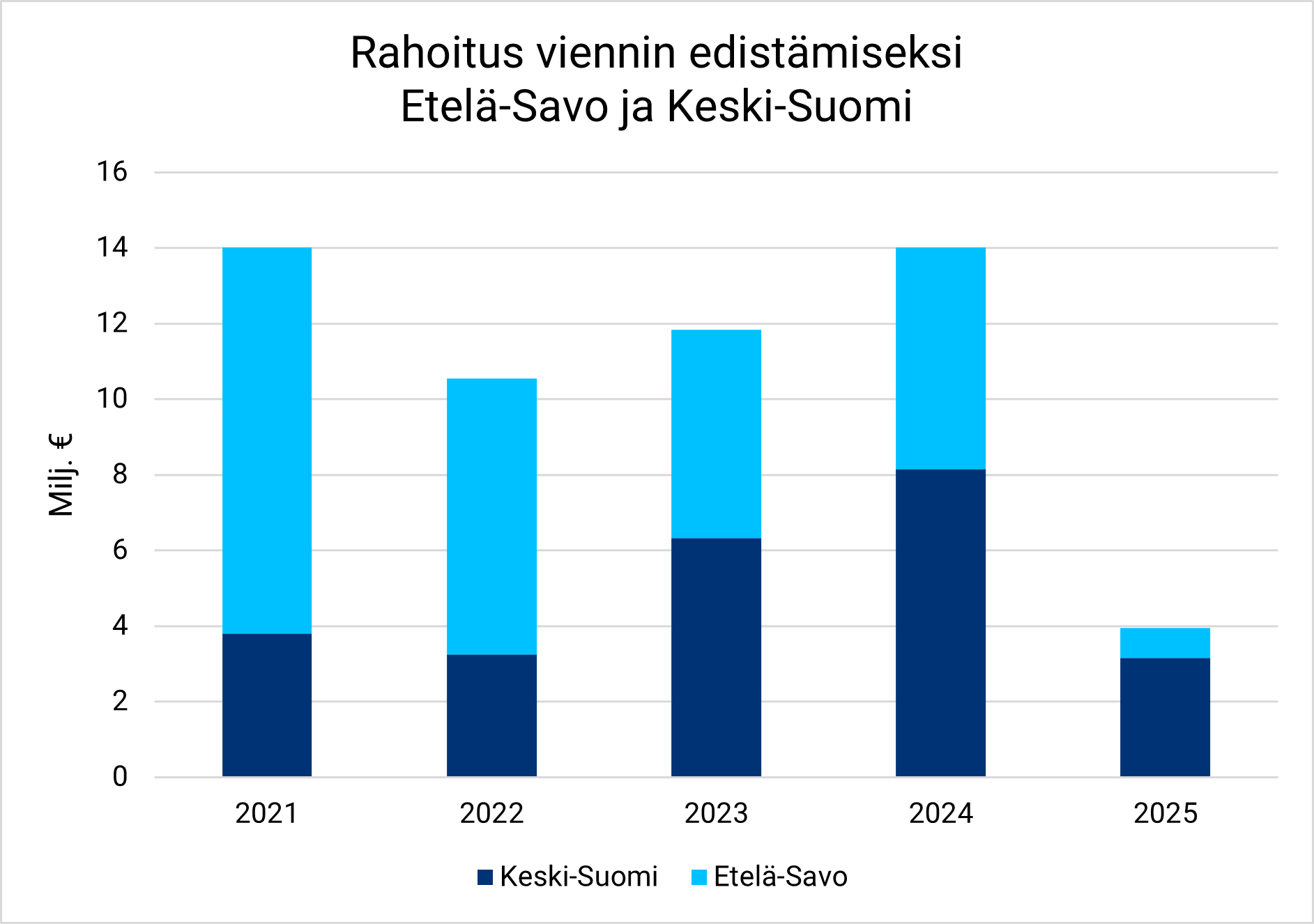 Viennin rahoitus jäi vuonna 2025 yhteensä noin 4 miljoonaan euroon (14). Lasku selittyy erityisesti puutuoteteollisuuden haasteilla ja vientimarkkinoiden epävarmuudella.