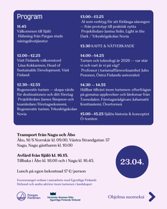 Under dagen fördjupar man sig i utvecklingen av hållbar och regenerativ turism, lösningar som teknologin och digitaliseringen erbjuder samt framtidens trender inom turism.