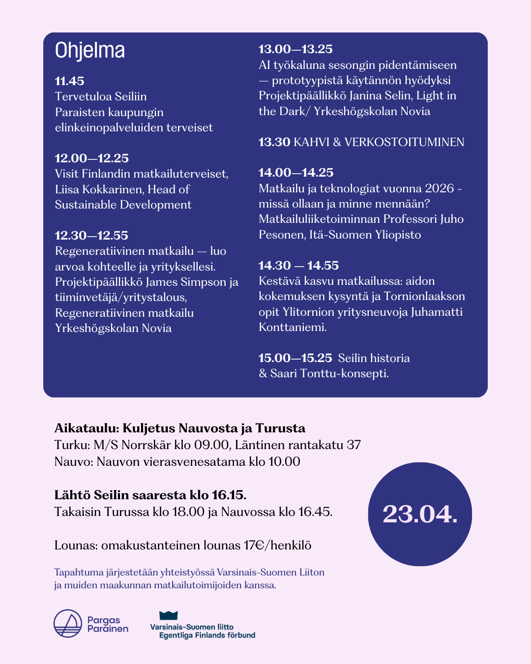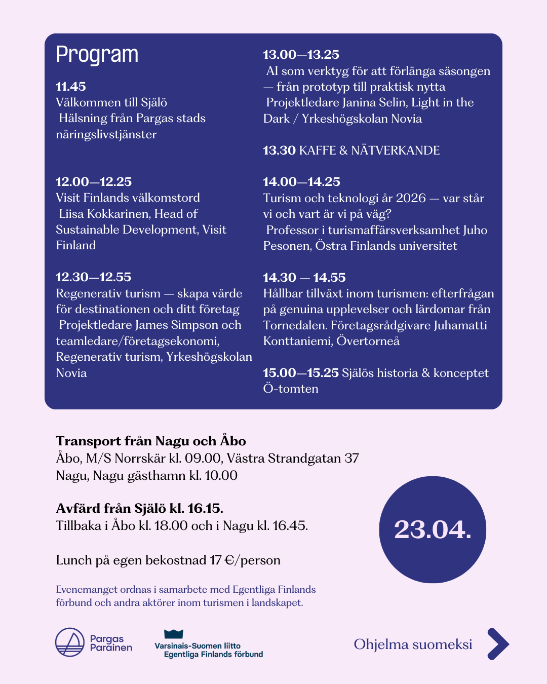 Pargas stad ordnar evenemanget i samarbete med Egentliga Finlands förbund.