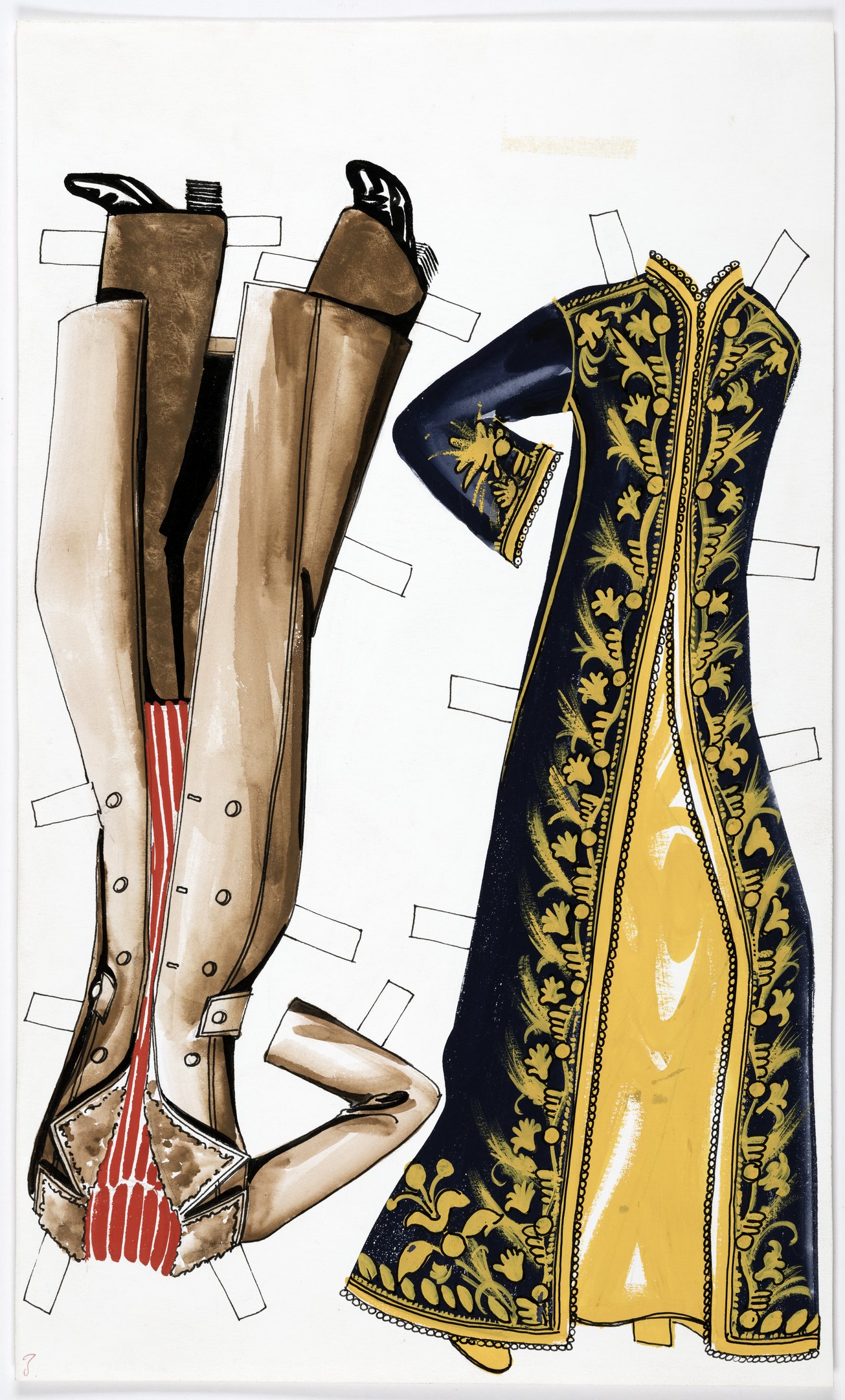 Näin poseerasi vuonna 1972 Apu-lehdessä julkaistu M. A. Numminen. Suomalaisten muotitoimittajien grand old ladyksikin tituleerattu Rauni Palonen piirsi viikoittain julkisuuden henkilön ja suunnitteli tälle viimeisimmän muodin mukaiset asut. Kuva: Rauni Palosen kokoelma, Museovirasto.