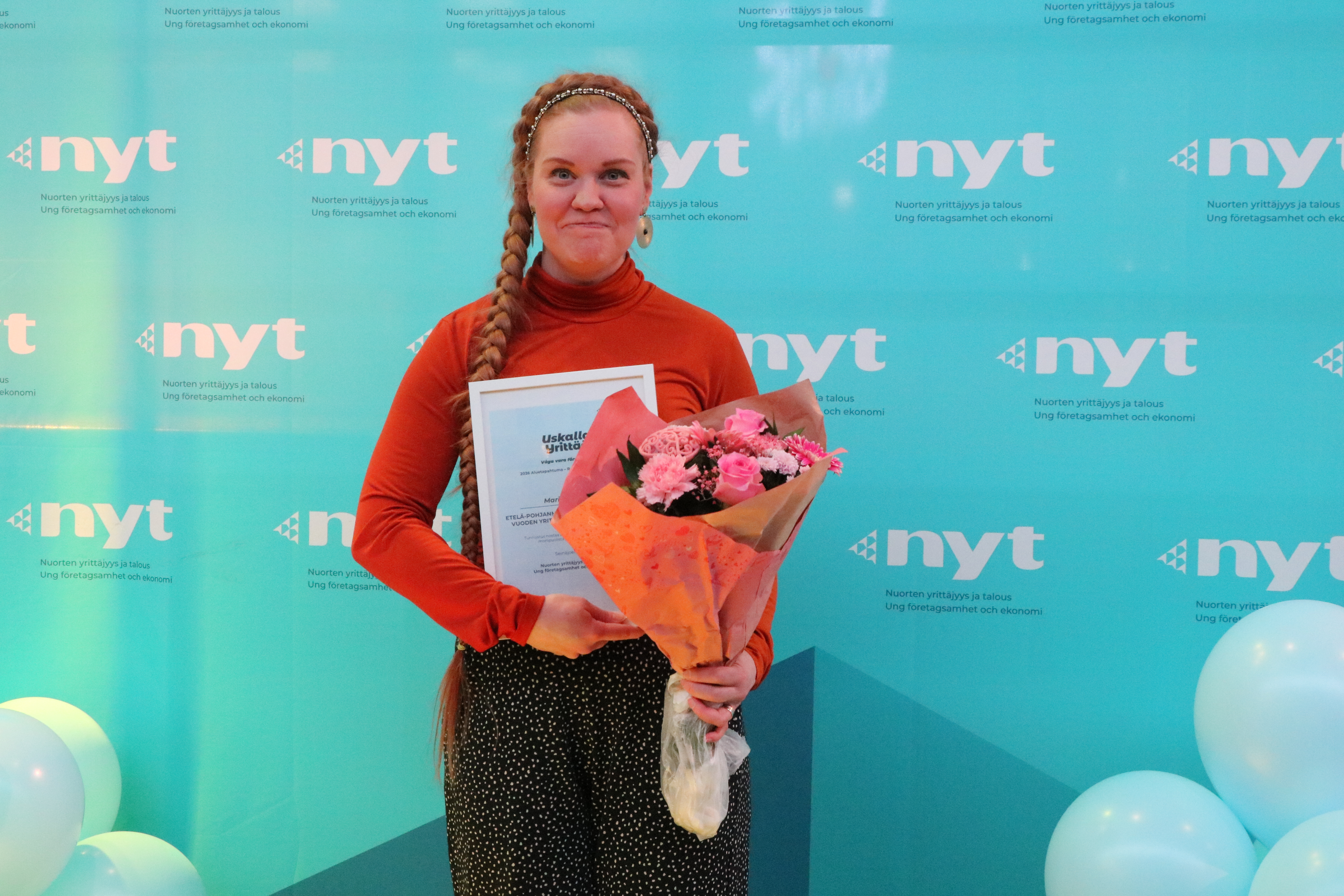 Tuomareiden perustelut: Selkeä ja ajankohtainen liikeidea, jossa oli useita toteutusmalleja. Vastuullisuus ja kiertotalous oli huomioitu hyvin. NYT-yrityksen visio tuli esiin vakuuttavasti, ja tiimin keskinäinen yhteistyö oli selkeää. Yrittäjämäinen ilmapiiri näkyi läpi. Yritys oli tehnyt jo merkittävästi myyntiä vuoden aikana, ja markkinointia oli kehitetty suunnitelmallisesti. Asiakaskohderyhmä oli tarkasti mietitty.