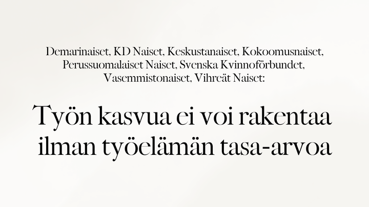 Poliittiset naisjärjestöt: Työn kasvua ei voi rakentaa ilman työelämän tasa-arvoa