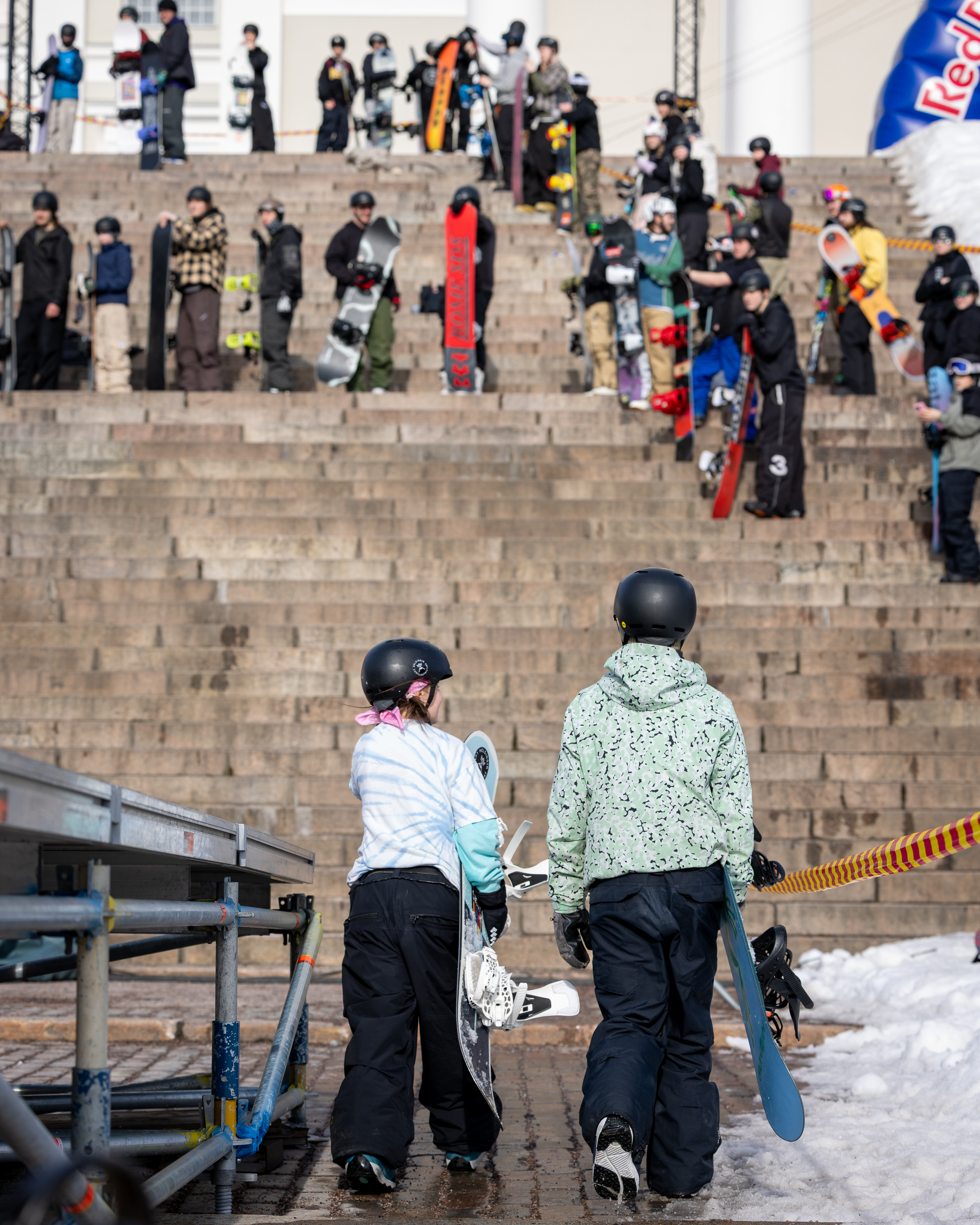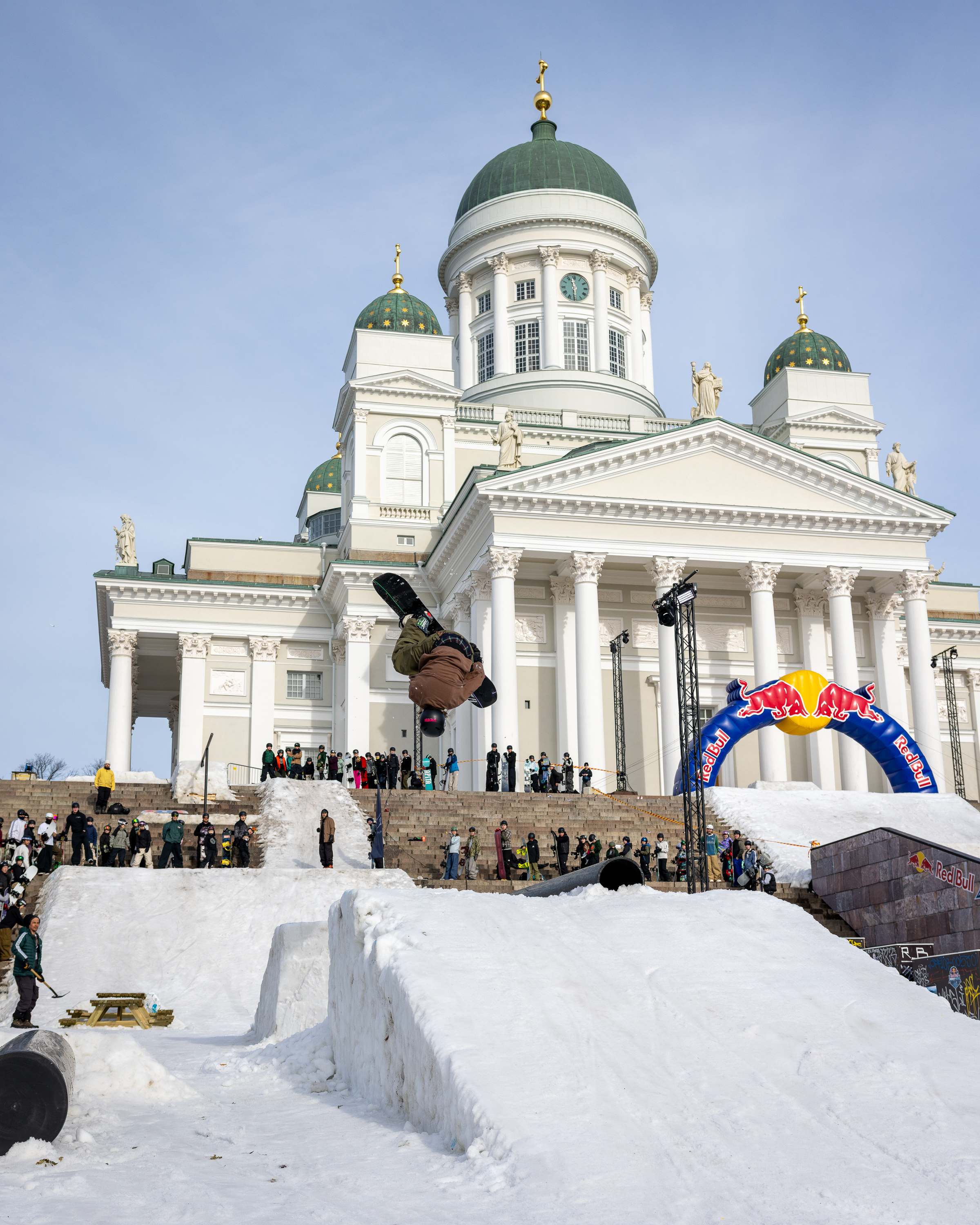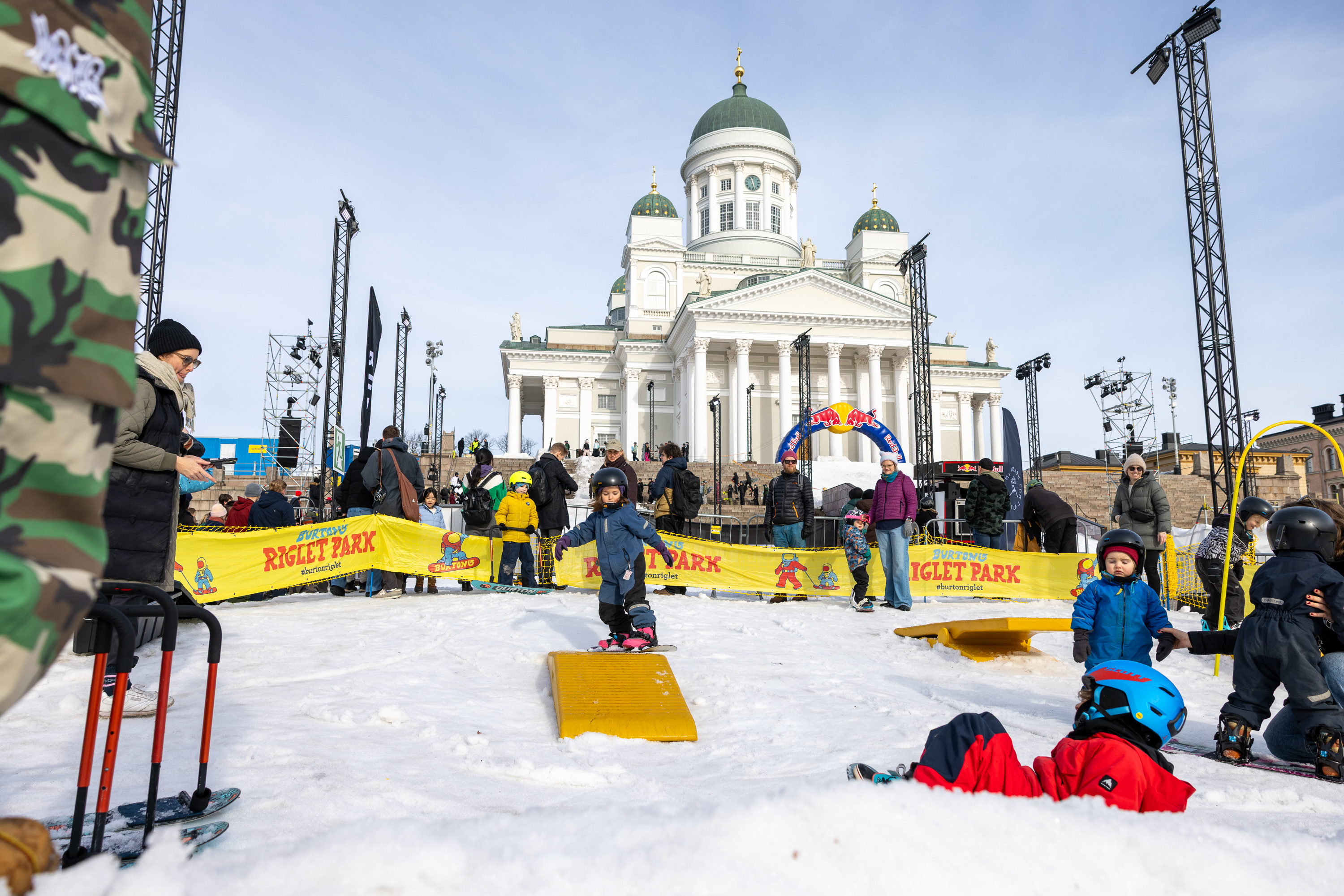 Helsingin keskustassa Senaatintorilla nähtiin sunnuntaina 8.3.2026 poikkeuksellinen katulumilautailutapahtuma, kun Helsingin Lumilautailijat ja Burton järjestivät avoimen lumilautailusession nuorille laskijoille. Tapahtuma jatkoi torilla edellisenä päivänä nähtyä Red Bull Heavy Metal -kutsukilpailua.