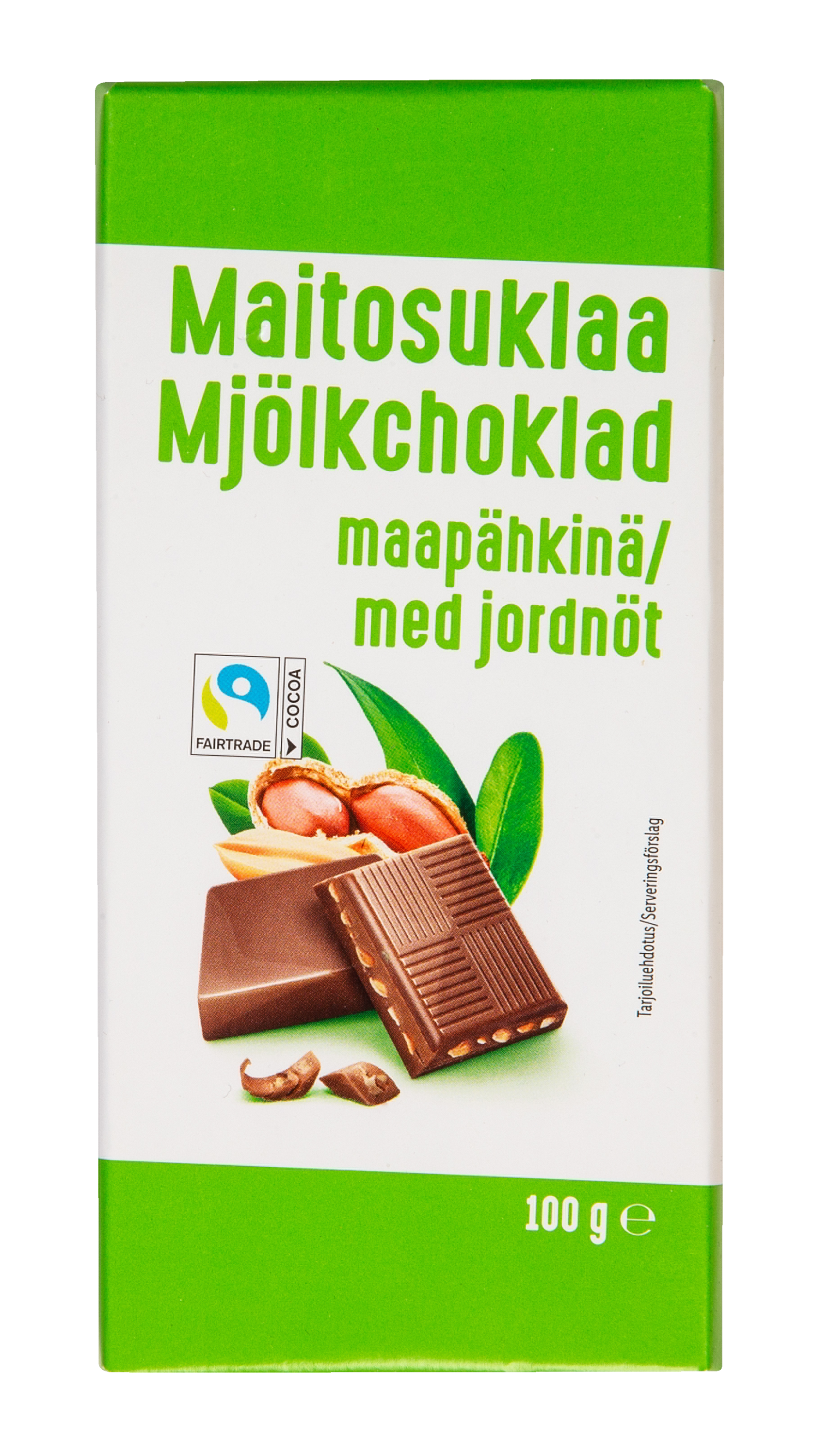 | Maitosuklaa, tummasuklaa, maapähkinäsuklaa ja valkosuklaa (100 g) | 1,48 € | 1,29 € | 12,84 % |