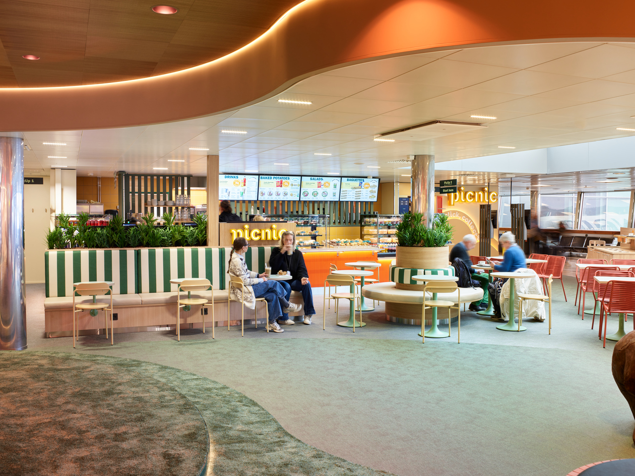 Suomalainen koko perheen ravintola Picnic tarjoaa lentoasemalla tuttuja makuja sekä täysin uuden konseptin, jossa matkustajat voivat noutaa ennakkoon tilaamansa ateriat näppärästi mukaan lennolle. Lentoaseman uusimman R-kioskin valikoimassa on nopeita eväitä ja paljon takeaway-tuotteita. Uniikki Pure – Taste of Finland tarjoaa aitoja suomalaisia makuja ja tuliaistuotteita, joiden kautta matkailija voi ottaa mukaansa palan Suomea.
