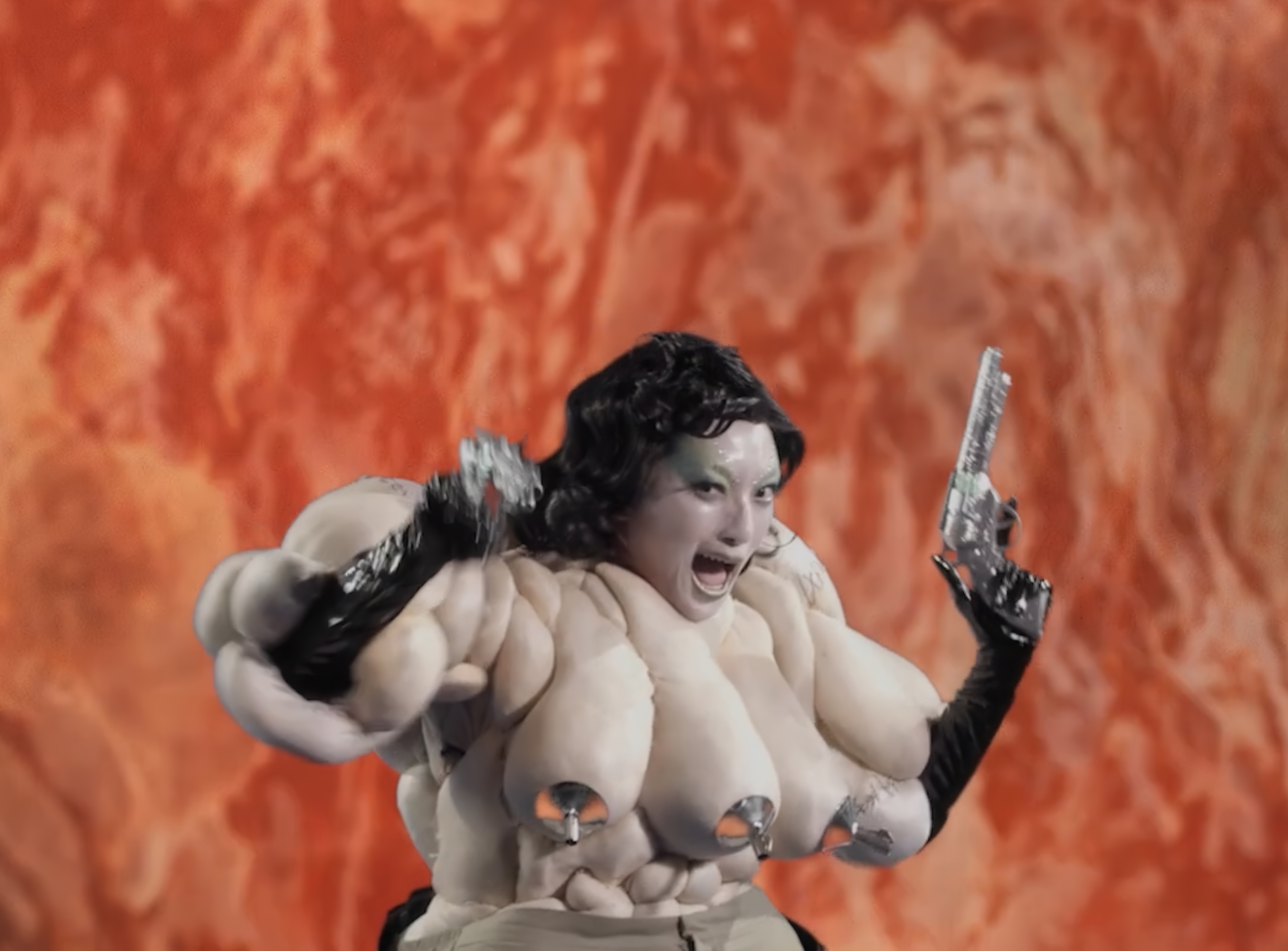 The work uses the playful aesthetics of campy B-movies, a mix of DIY and CGI effects, and imaging technologies including the latest quantum ghost imaging that uses photons to produce images, as well as remote sensing method LiDAR (Light Detection and Ranging), 3-D modeling photogrammetry techniques and thermal cameras — invoking the ways through which territory and bodies are measured, mapped and militarised. The Phantom Combatants moves between poetic narration and heightened theatricality, featuring highly stylised costumes and props.