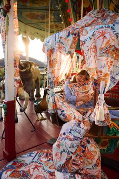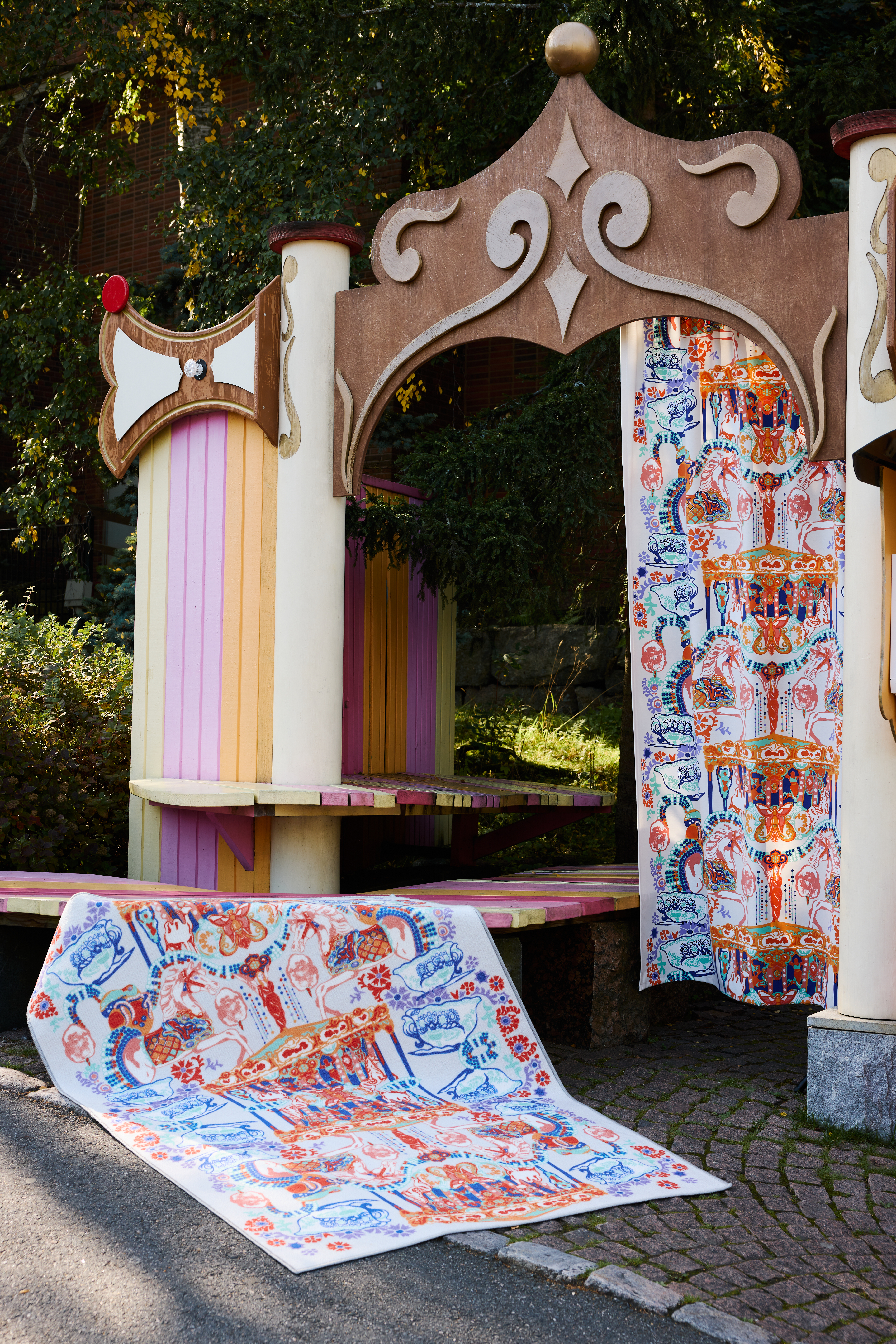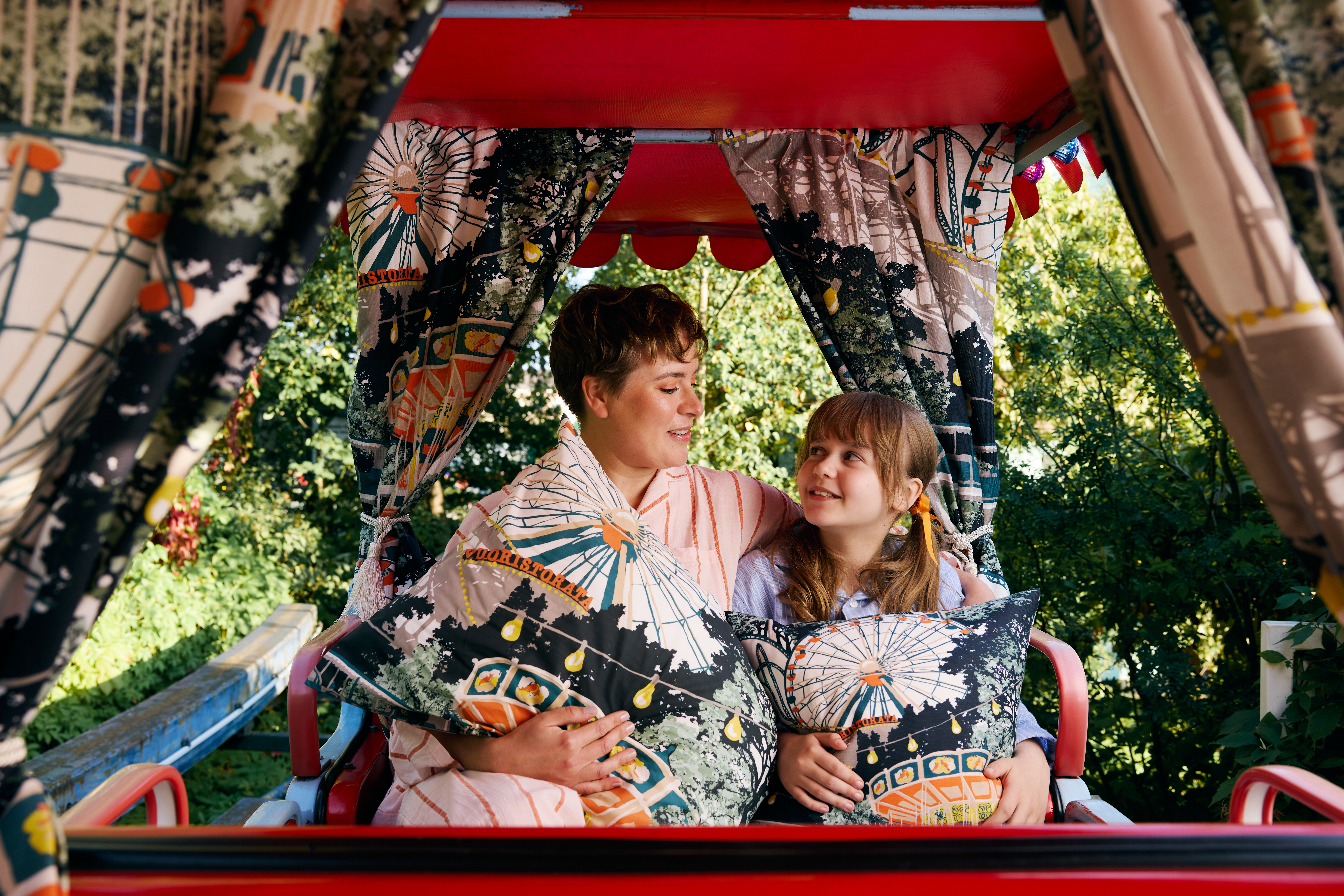 Kesäisen iloinen mallisto yhdistää Vallilan ja Linnanmäen riemukkaat maailmat kuoseihin, jotka sopivat niin lapsille kuin aikuisillekin. Kuosit muistuttavat Linnanmäellä vietettyjen päivien riemusta unohtamatta ripauasta mielikuvitusta.