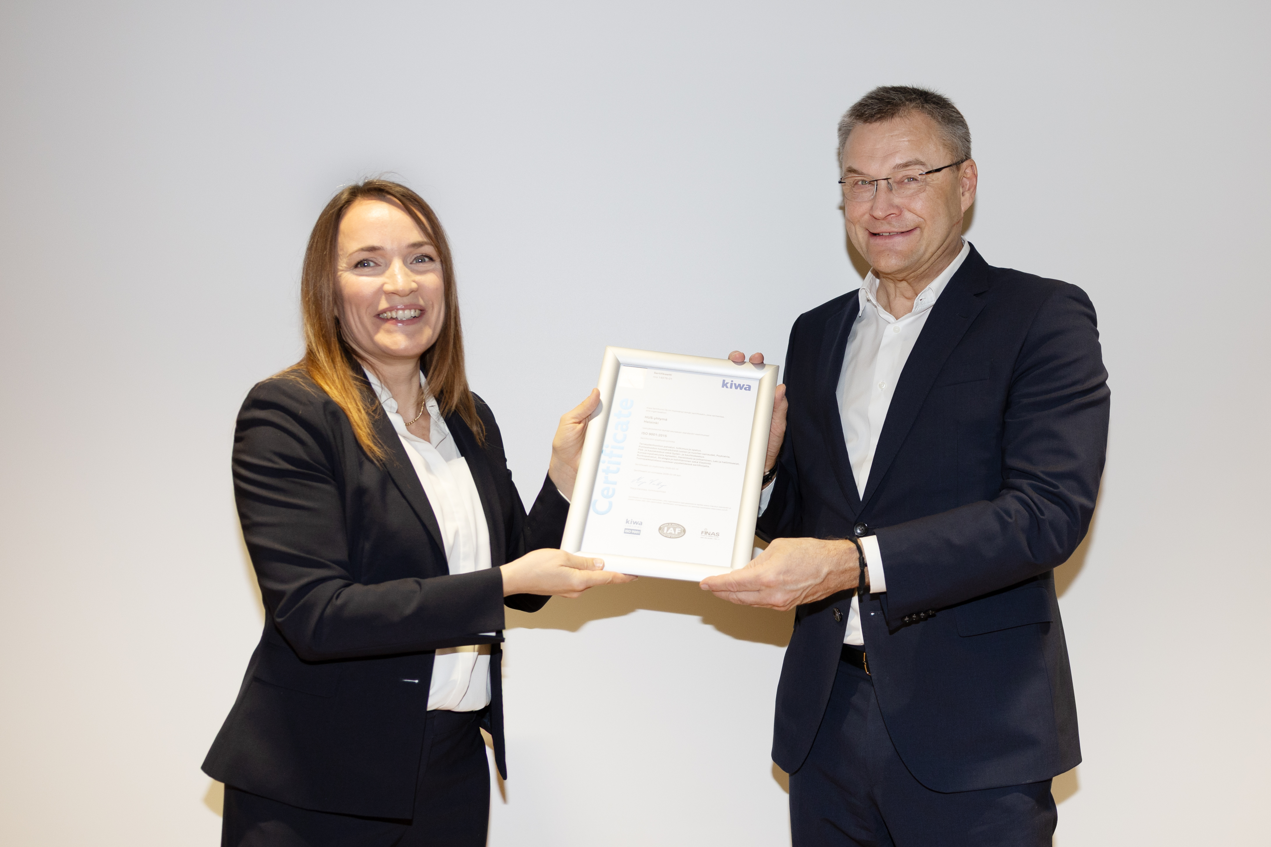 ”Vi har stark tilltro till nyttan med kvalitetssystemet för vår verksamhet och för att förenhetliga verksamhetssätten inom den stora organisationen. Certifikatet är ett viktigt bevis på att vi uppfyller kraven enligt den internationella kvalitetsstandarden. Vi har bra beredskap för att certifiera hela vår organisation”, säger HUS verkställande direktör Matti Bergendahl.