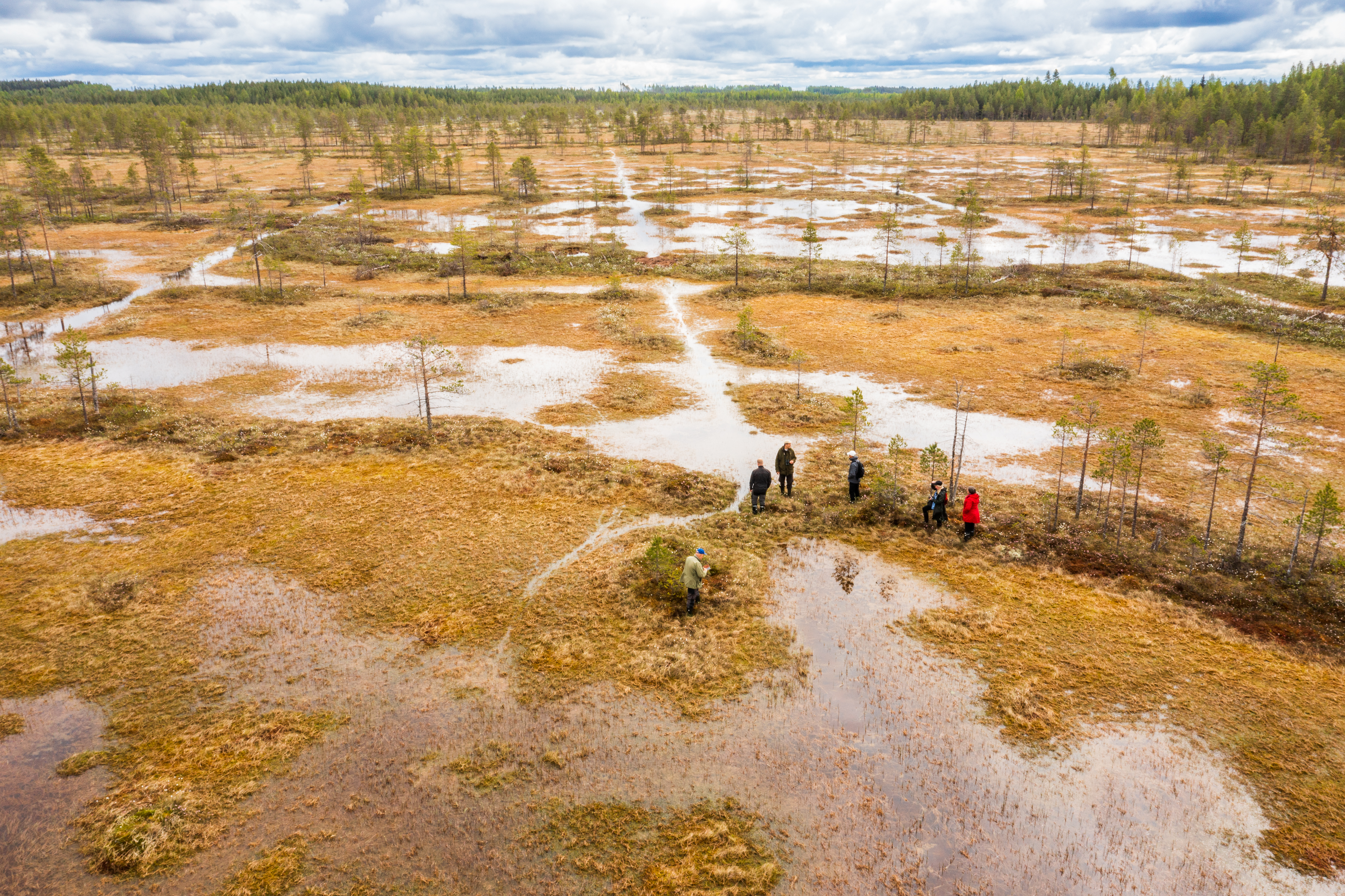 Suon ennallistamisessa tukitaan ojia ja poistetaan puustoa suon vedenpinnan kohottamiseksi. Kuvassa Hiilipörssin ennallistama Piitsonsuo Ilomantsissa. Jarno Artika
