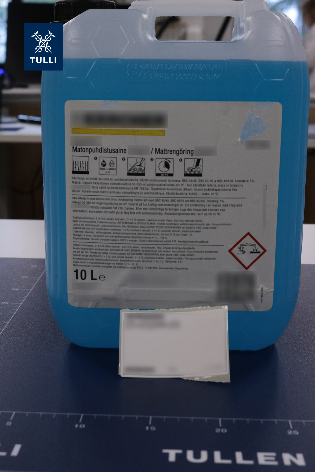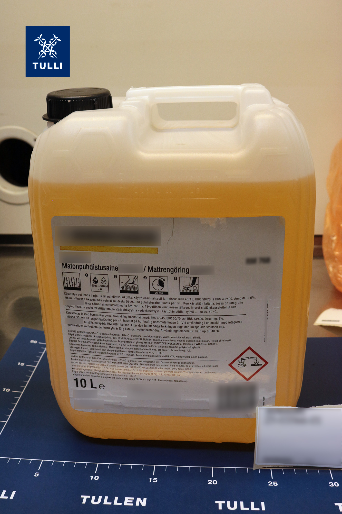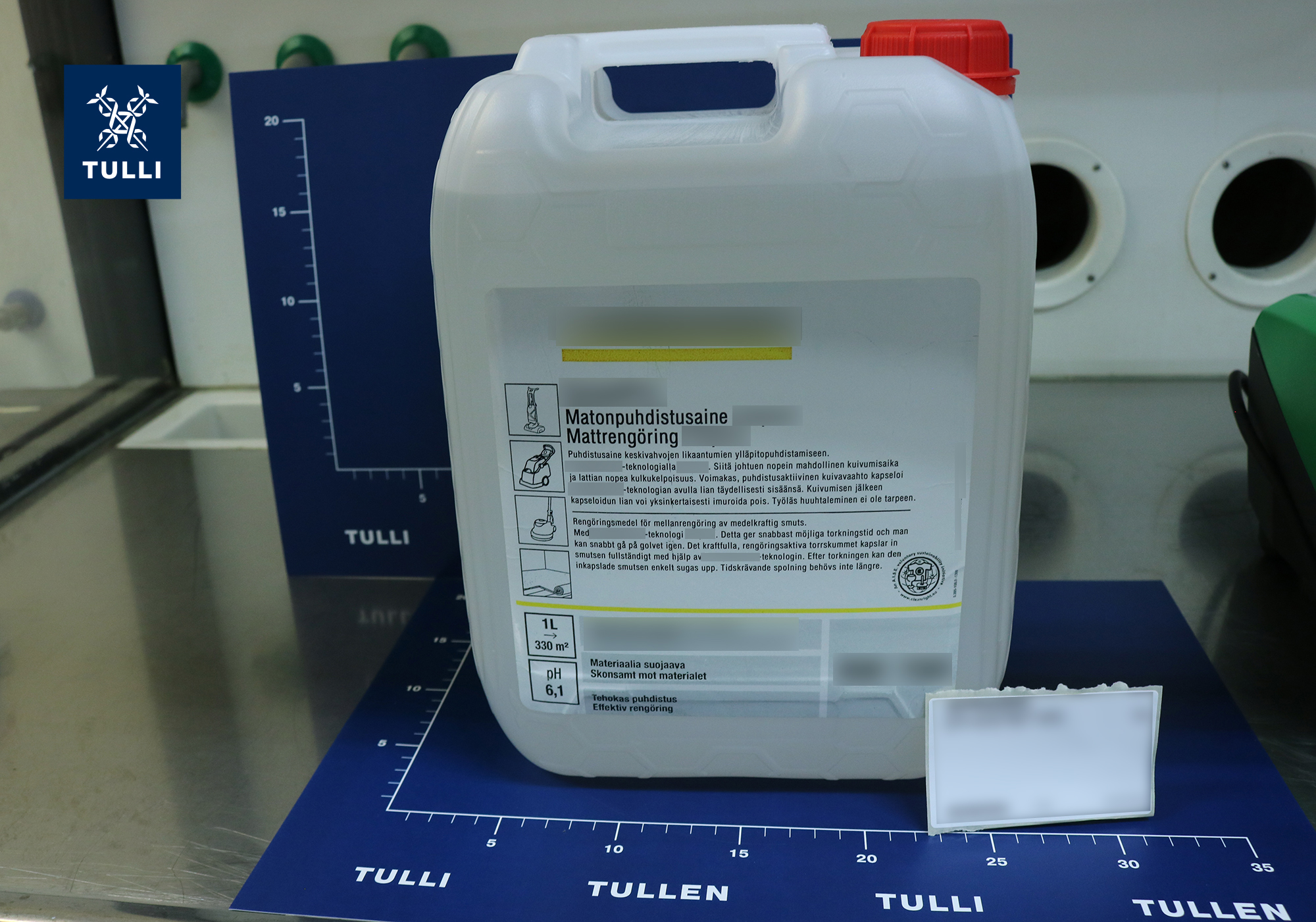Kuvia Tullin takavarikoimasta gammabutyrolaktonista Tullin kuvapankissa.
