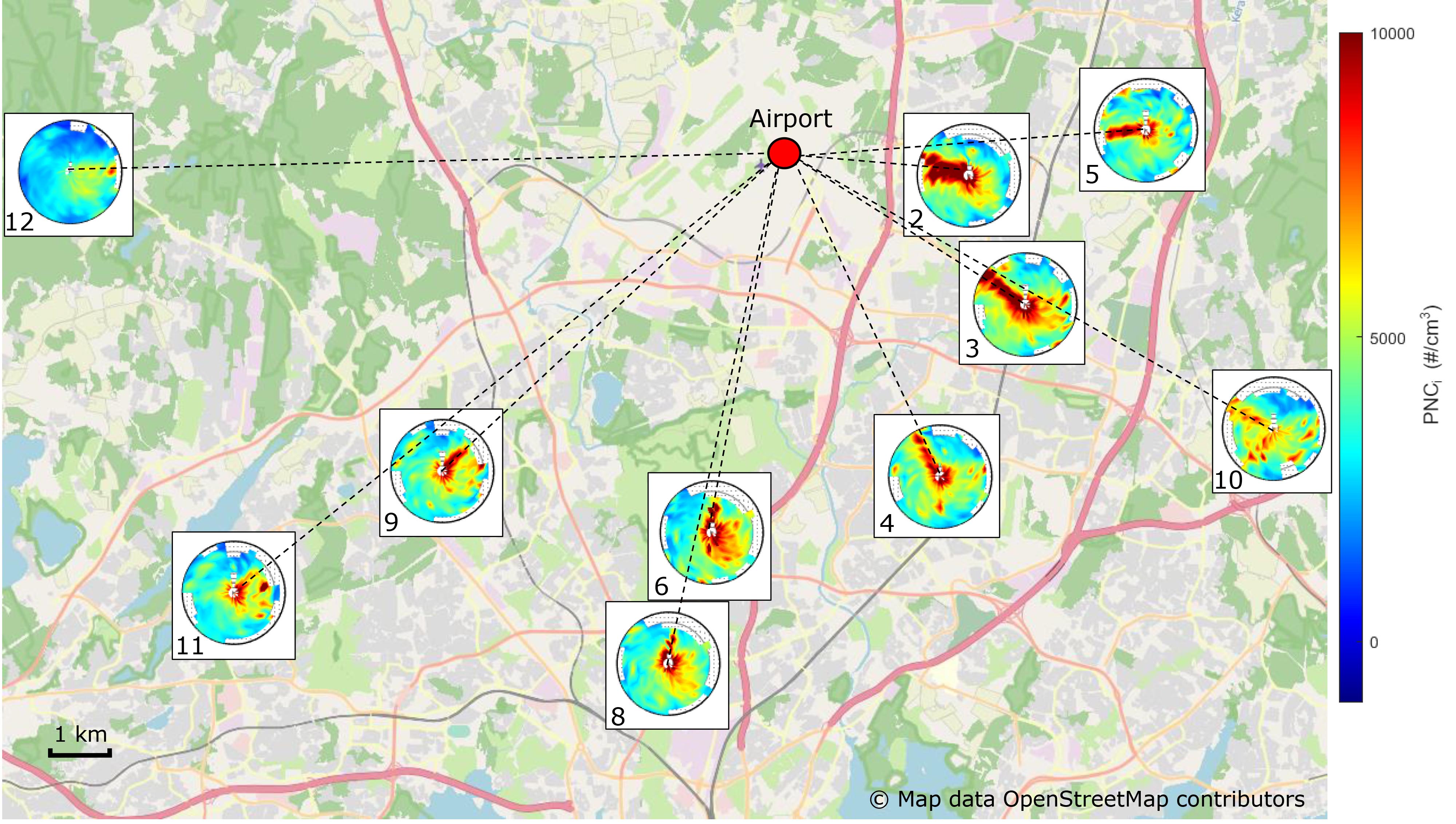 Tutkimus osoitti, että lentokentältä peräisin olevat ultrapienet hiukkaset leviävät tuulen mukana jopa 15 kilometrin päähän. WHO:n määrittämän korkean pitoisuuden raja (20 000 #/cm³) ylittyi noin neljän kilometrin päässä kentästä, kun tuuli puhalsi kentältä päin. Vuositasolla vallitsevan tuulen suunnassa hiukkaspitoisuudet ovat vastaavalla etäisyydellä arviolta 30–50 % korkeammat kuin tyypillisessä kaupunki-ilmassa. Lähempänä lentokenttää pitoisuudet ovat vielä suurempia – jopa kaksinkertaisia. Suomessa tuulee useimmiten lännestä.
