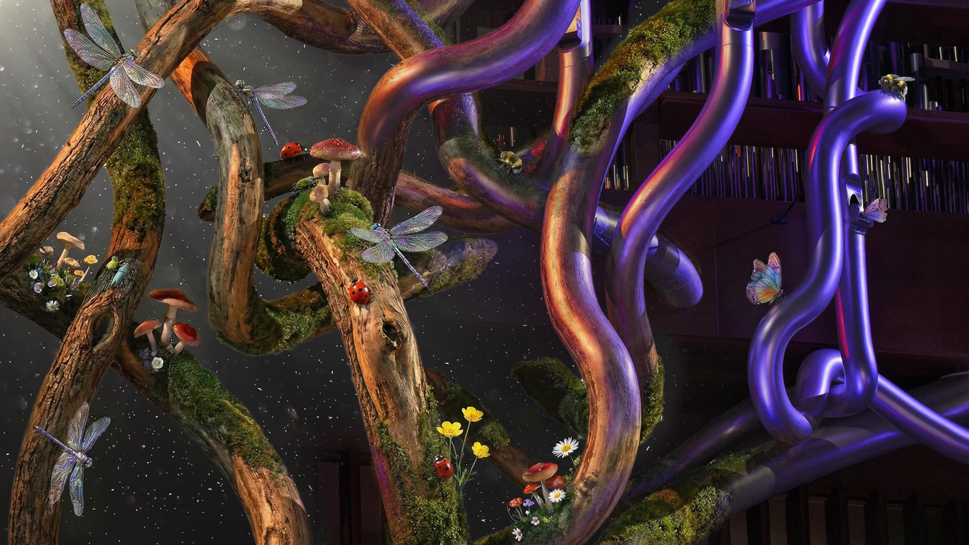 Urkusatu BUU – Kertun ja Hukkasen seikkailut -kuvitusta. Lauantaina 14.11. klo 12.00 esitettävän sadun on kirjoittanut kirjailija Kari Hotakainen, sävellys on Jouni Hirvelän käsialaa. Urkurina tunnin pituisessa konsertissa toimii Eerik Ohtamaa. Kuva: Sakari Röyskö, kuvankäsittely Pekka Piippo