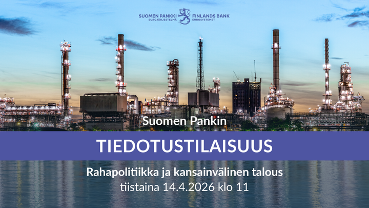 Tervetuloa Suomen Pankin tiedotustilaisuuteen tiistaina 14.4.2026 klo 11.00. Pääjohtaja Olli Rehn kertoo tilaisuudessa rahapolitiikasta sekä kansainvälisen talouden teemoista.