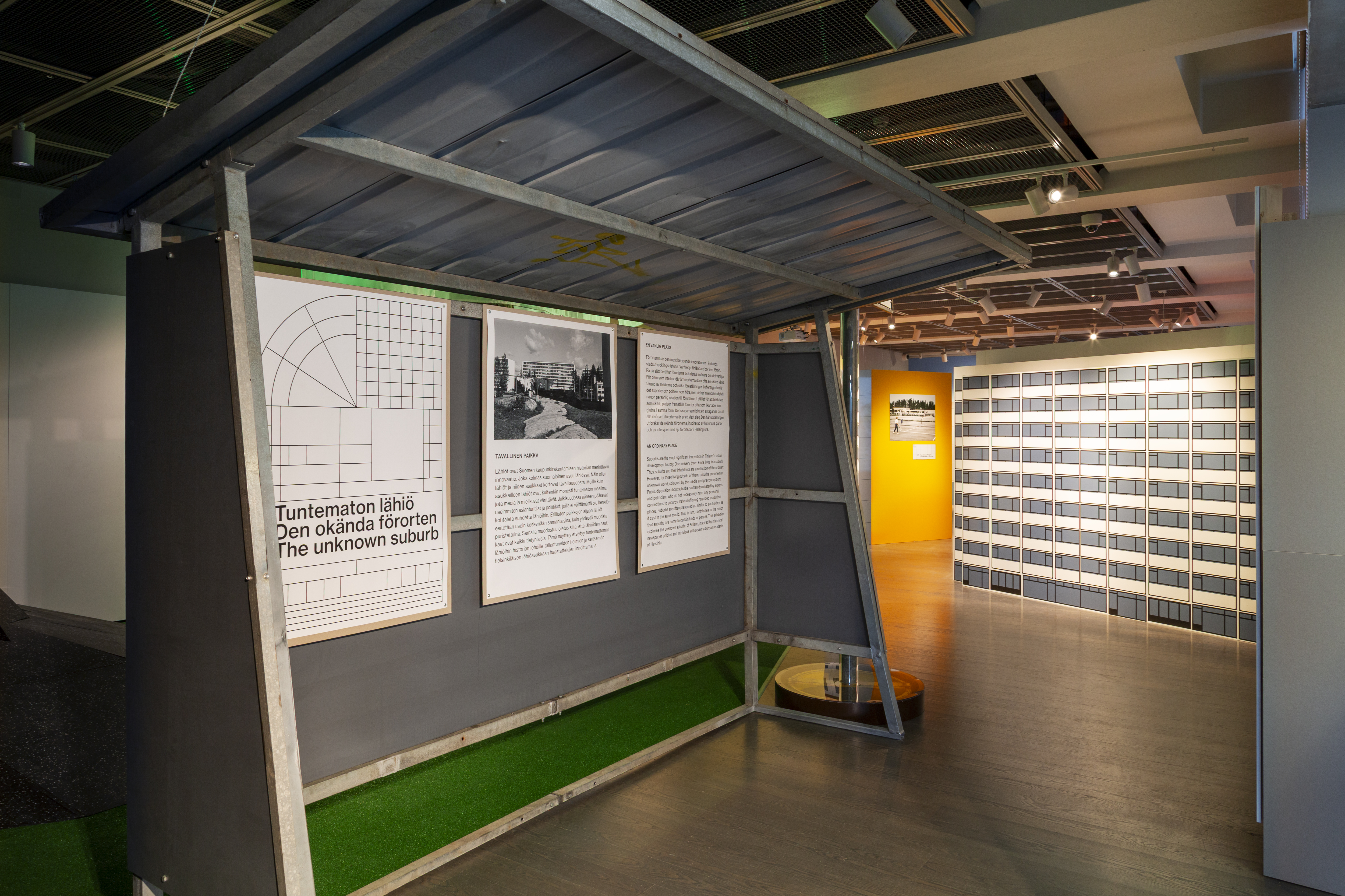 Tuntematon lähiö -näyttelyssä kävijät pääsevät tutustumaan asumalähiöiden muuttuviin rakennustyyppeihin 1940-luvulta 2000-luvulle. Näyttelyssä on esillä kuusi erilaista lähiörakennusta.