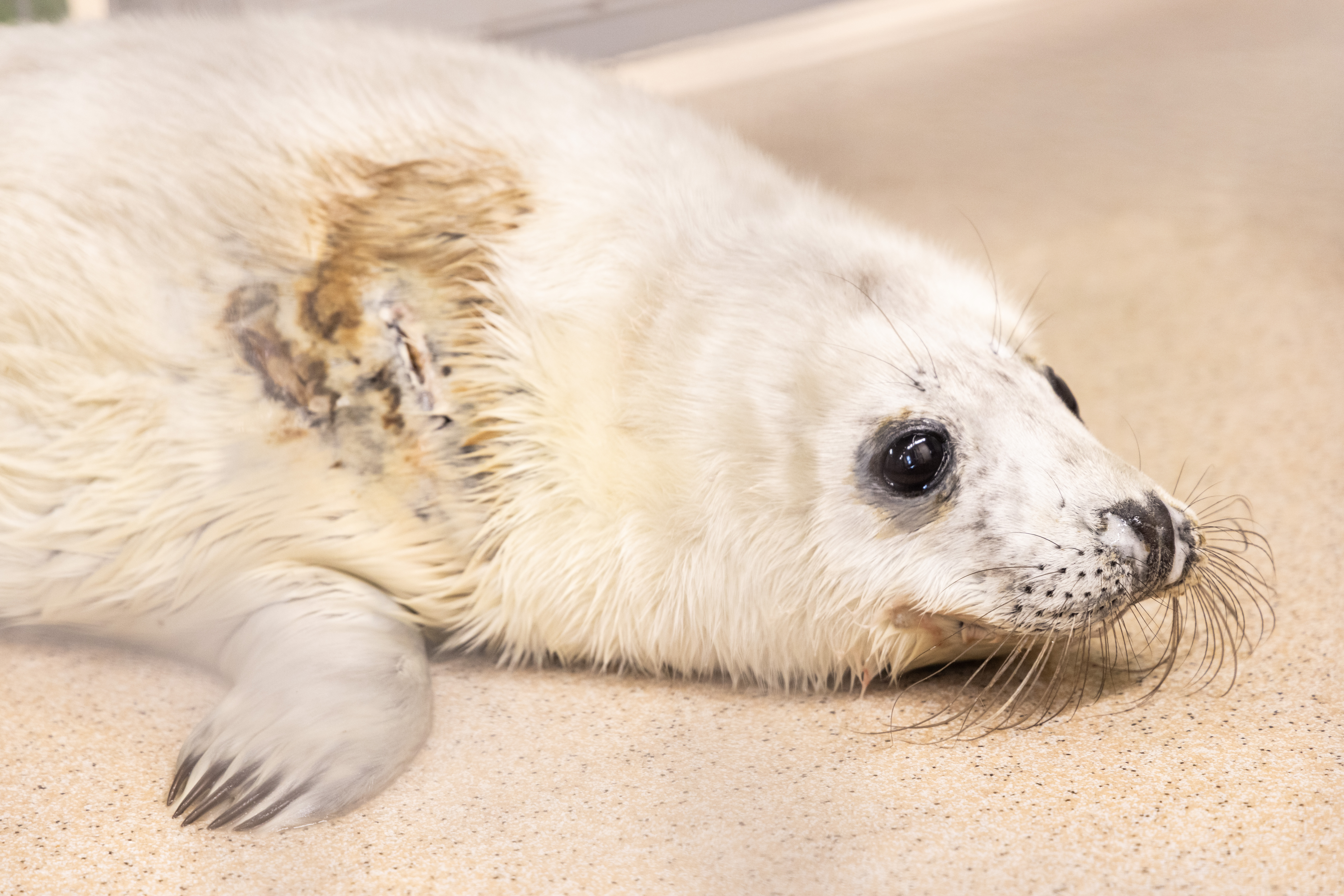 Porkkalan kuutti saapui maaliskuun puolivälissä kuuttikarvaisena ja haavoittuneena. Kuva: Annika Sorjonen, Korkeasaaren eläintarha