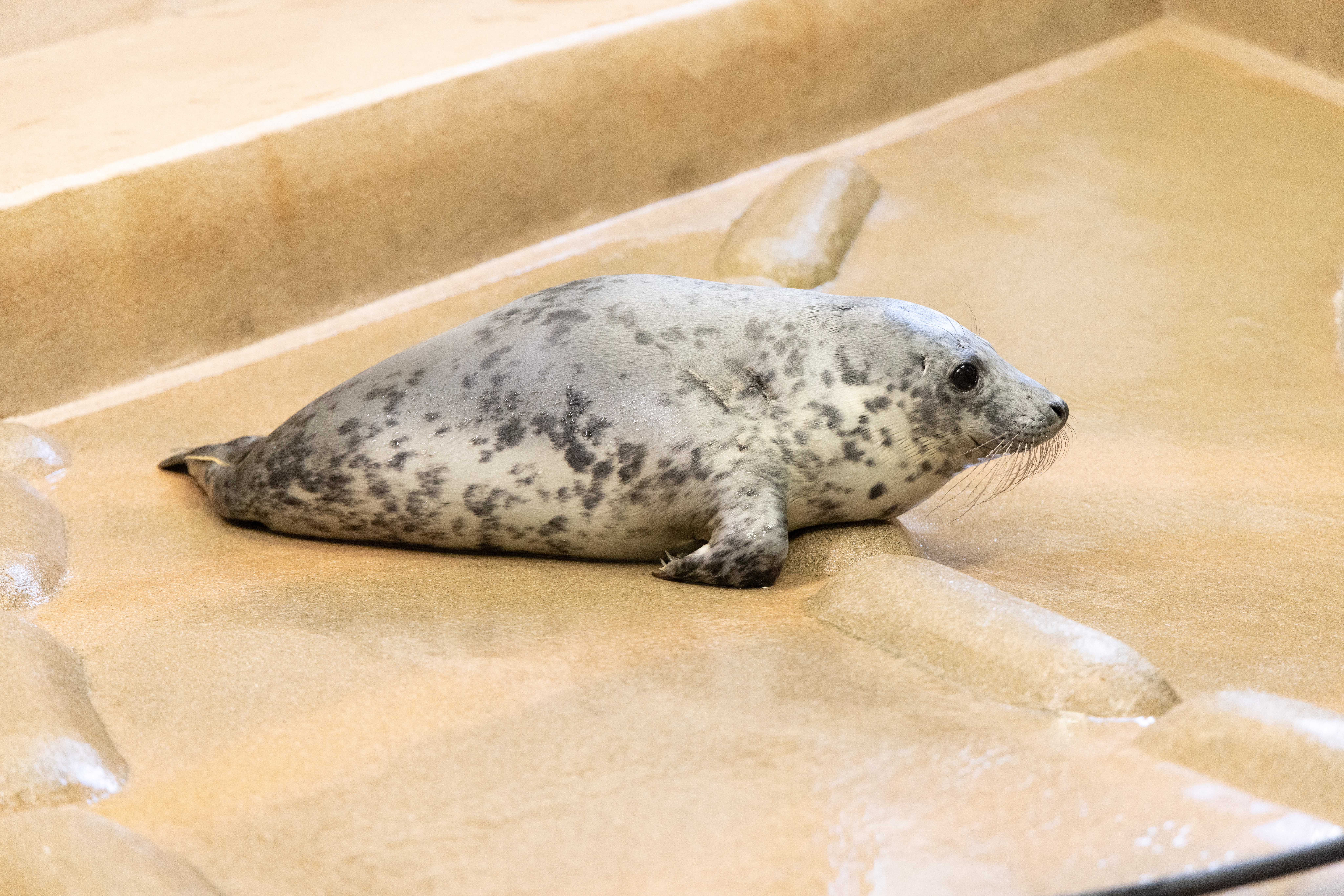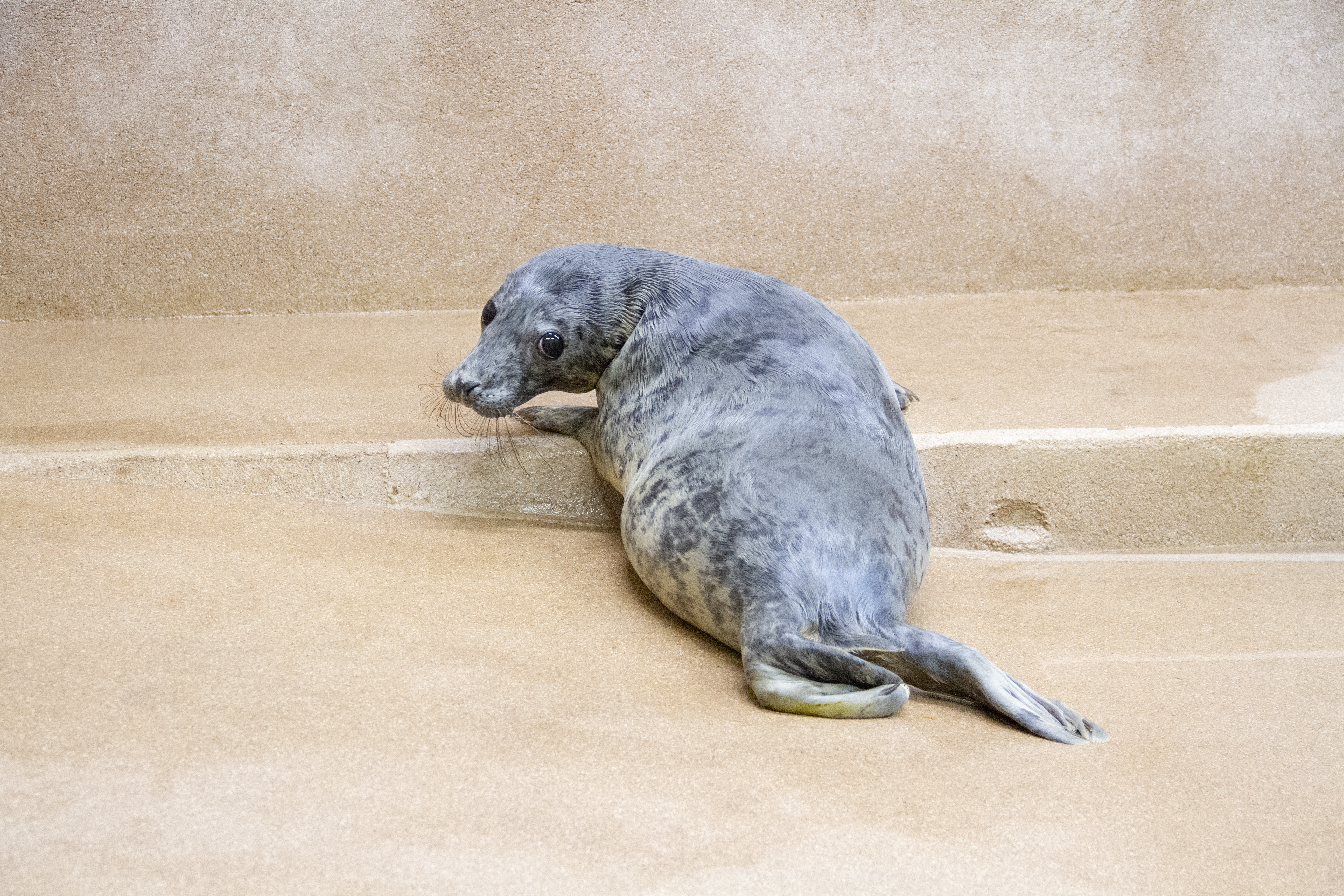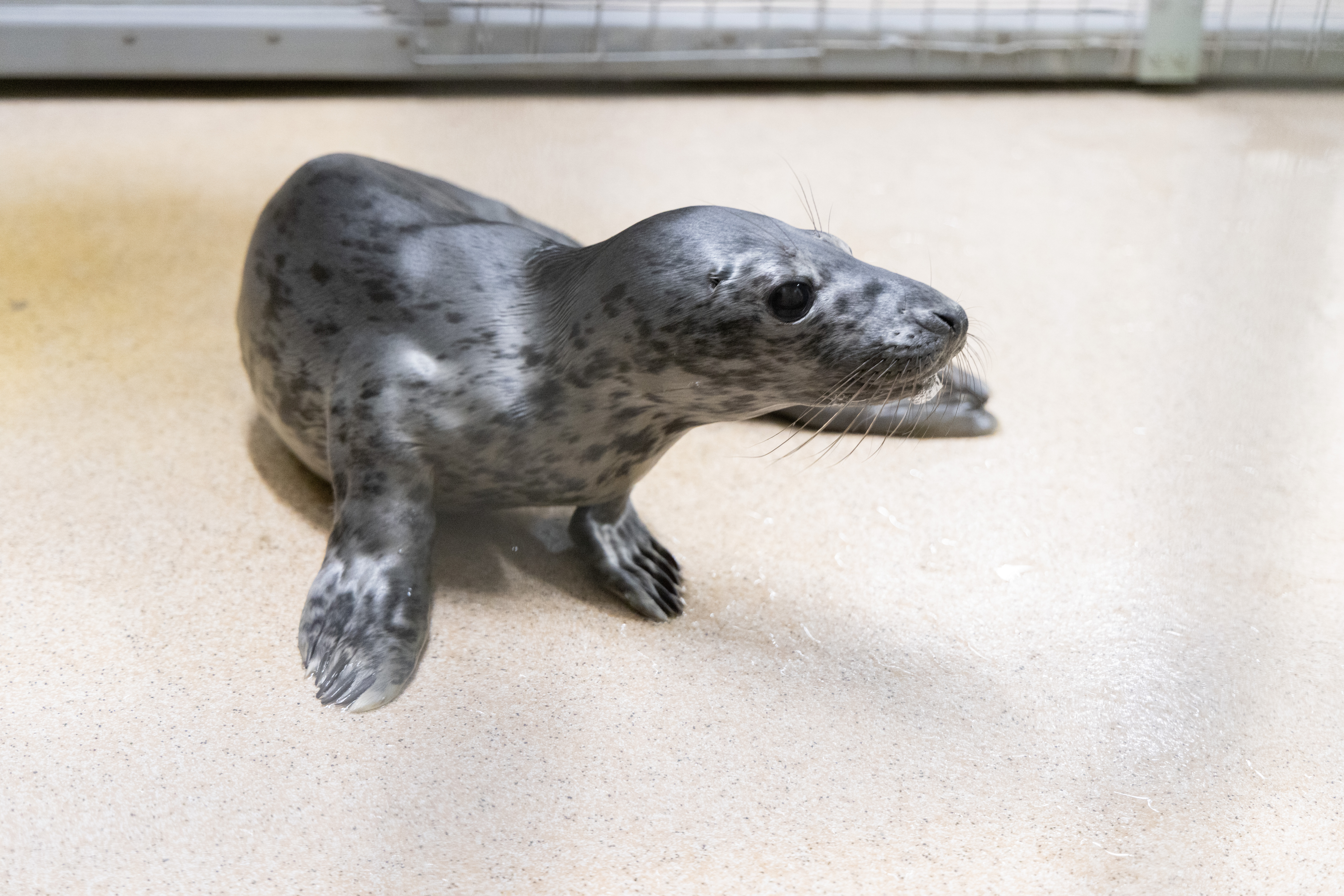 Porkkalan kuutti siirrettiin huhtikuun alussa allashuoneeseen. Kuva: Julia Peltola, Korkeasaaren eläintarha
