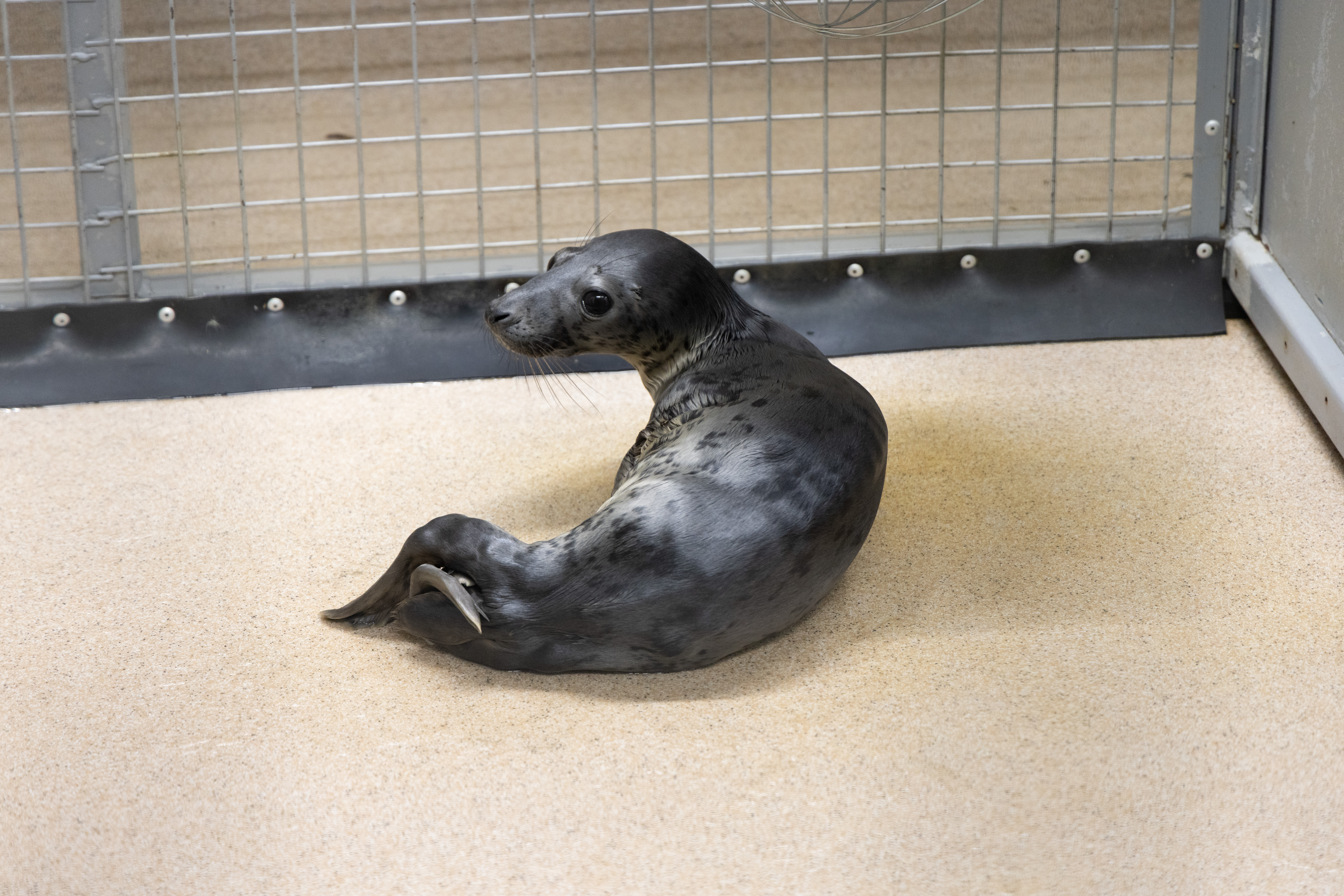 Kevään ensimmäinen, vielä täysin valkokarvainen harmaahylkeen poikanen tuotiin hoitoon maaliskuun puolivälissä. Merivartiosto oli havainnut haavoittuneen kuutin jäälautalla Porkkalanniemen saaristossa. Kuutin niskassa oli kaksi syvää haavaa, jotka ovat hoidossa parantuneet hyvin. Porkkalan kuutti pääsi viime viikolla isompaan altaaseen. Se saa kilon silakkaa päivässä, sillä tavoitteena on kartuttaa painoa nykyisestä noin 20 kilosta.