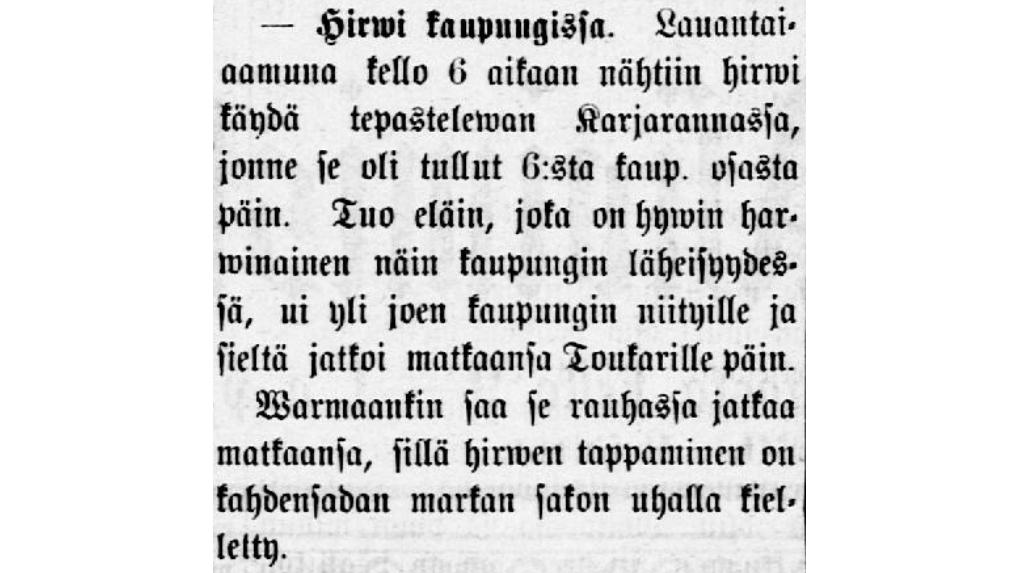 Uudessa tutkimuksessa selvitettiin Suomen eliölajistossa tapahtuneita muutoksia 1800-luvulta 1900-luvulle. Digitoitujen sanomalehtiaineistojen avulla tutkijat saivat selville, että esimerkiksi hirvi, supikoira ja harmaahaikara ovat olleet Suomessa laajemmalle levinneitä kuin aiemmin on tiedetty. Turun yliopiston historioitsijoiden ja biodiversiteettitutkijoiden yhteistyönä syntynyt uusi tutkimus avaa mahdollisuuksia ymmärtää eliölajistossa tapahtuvia muutoksia.
