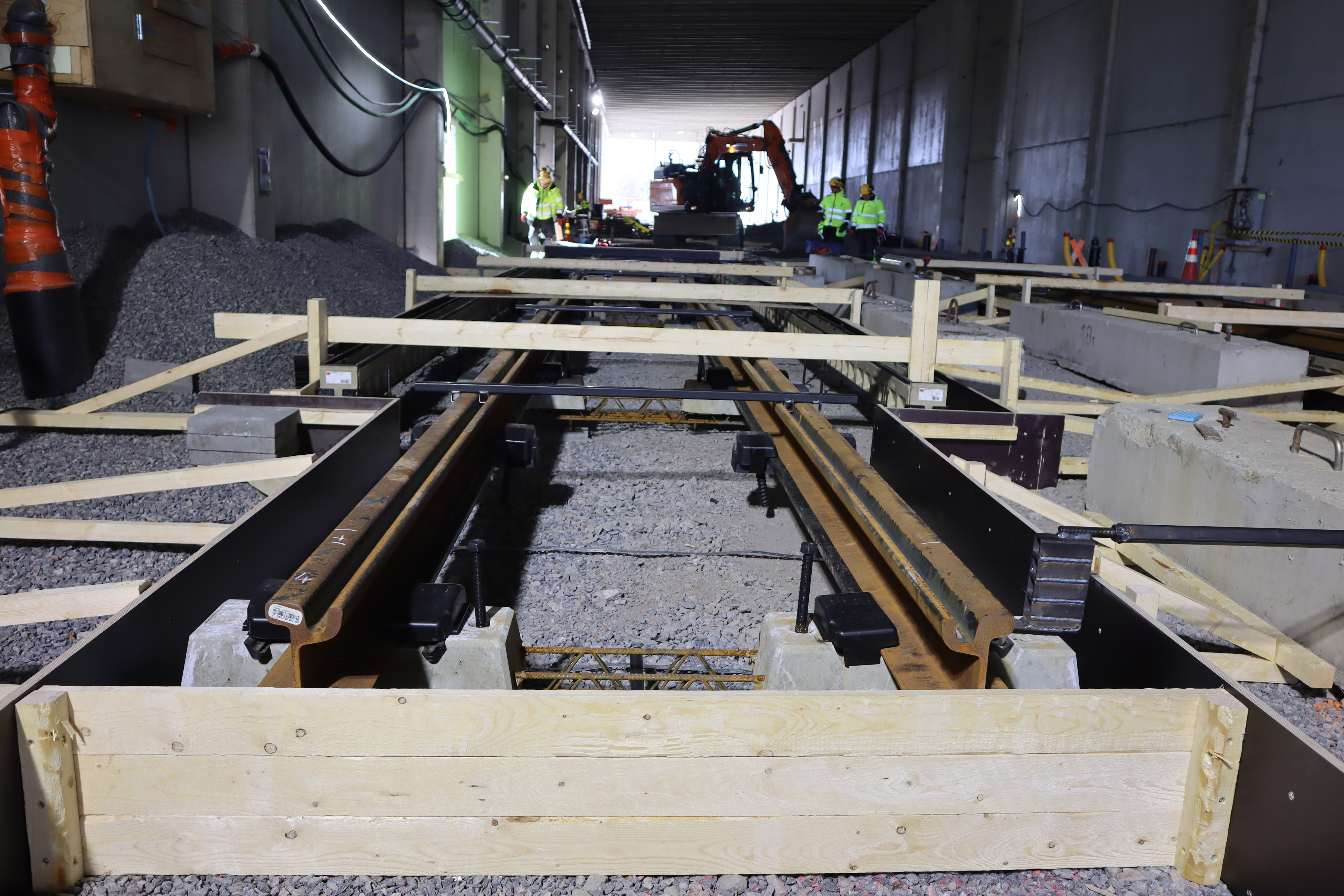 Ennen ensimmäisiä kiskoja paalulaatan päälle asennetaan talotekniikan reitit ja läpiviennit, kuten kaapelisuojaputket, ratasähkön ja teknisten järjestelmien kaapeloinnit sekä viemäröinti ja kuivatusratkaisut. Kiskoaluille on rakennettu lähes 2 000 metriä linjakuivatuskouruja ja kaapelisuojaputkia, viemäreitä puolestaan asennetaan noin 40 000 metrin edestä. Näiden jälkeen tehdään ratapohjat ja muut rakennekerrokset, joiden päälle varsinainen raiderakenne toteutetaan.