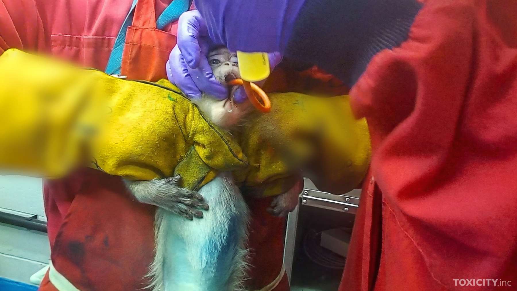 Materiaalissa näkyvät kokeet on tehty lääkkeiden, esimerkiksi kipulääkkeiden, antibioottien, astmalääkkeiden, painonpudotuslääkkeiden ja sienilääkkeiden, myrkyllisyyskokeita varten. Samanlaisia testejä tehdään myös teollisuuskemikaalien, torjunta-aineiden ja ruokien lisäaineiden takia.