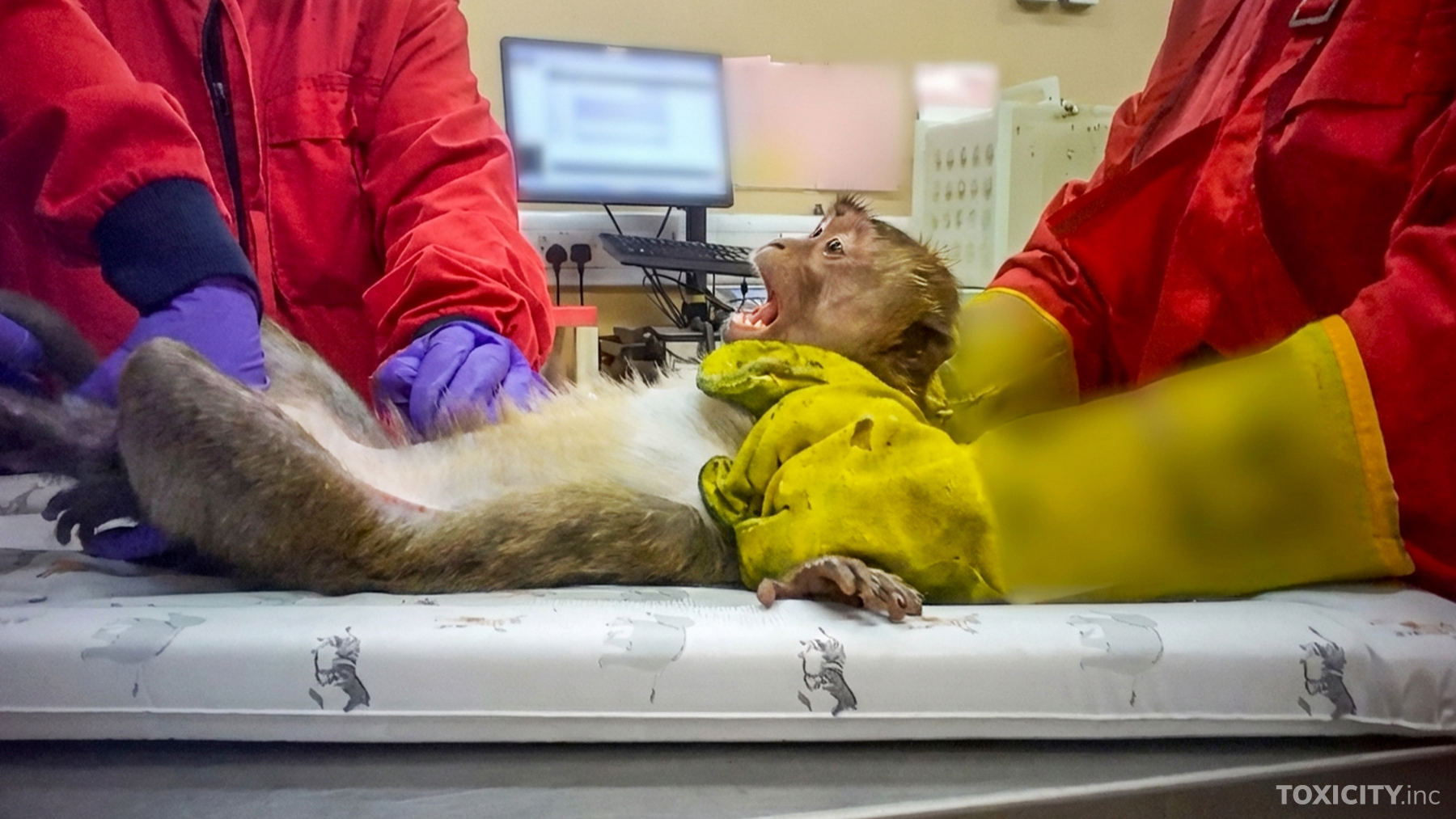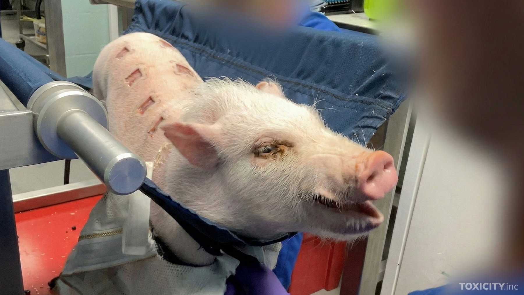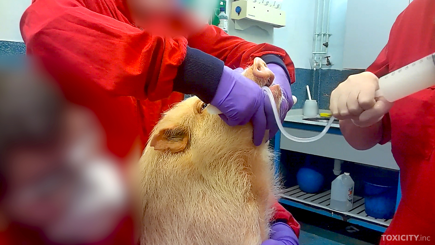 Kuvissa ja videoissa rotat, kanit, koirat, siat ja makakiapinat altistetaan myrkyllisille aineille. Kokeissa eläimiä pistetään ja pakkosyötetään ja niille tehdään avohaavoja, joille levitetään testattavaa ainetta. Niitä myös pakotetaan hengittämään myrkyllisiä aineita.