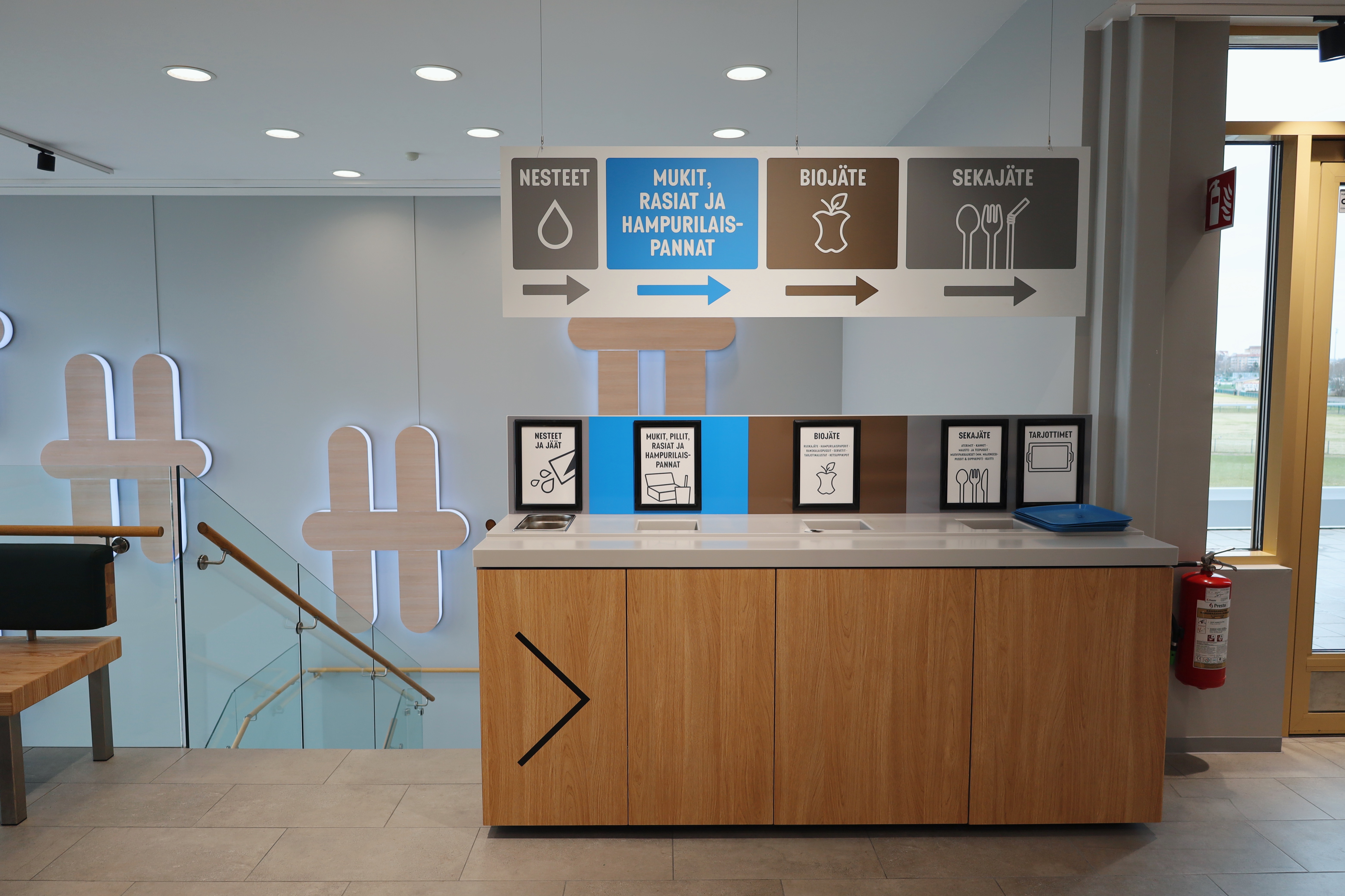 – Lajittelupisteet on otettu pääosin hyvin vastaan ja olemme saaneet niistä kiitosta asiakkailta, jotka ovat kotonakin tottuneet lajittelemaan jätteensä. Olemme kokeilleet erilaisia vaihtoehtoja ja pyrimme edelleen kehittämään pisteitä niin, että ne olisivat mahdollisimman informatiivisia ja helppoja lajittelun onnistumiseksi. Haluamme tehdä lajittelusta niin sujuvaa ja nopeaa, ettei välinpitämättömyydelle jää tilaa, Mäki kertoo.
