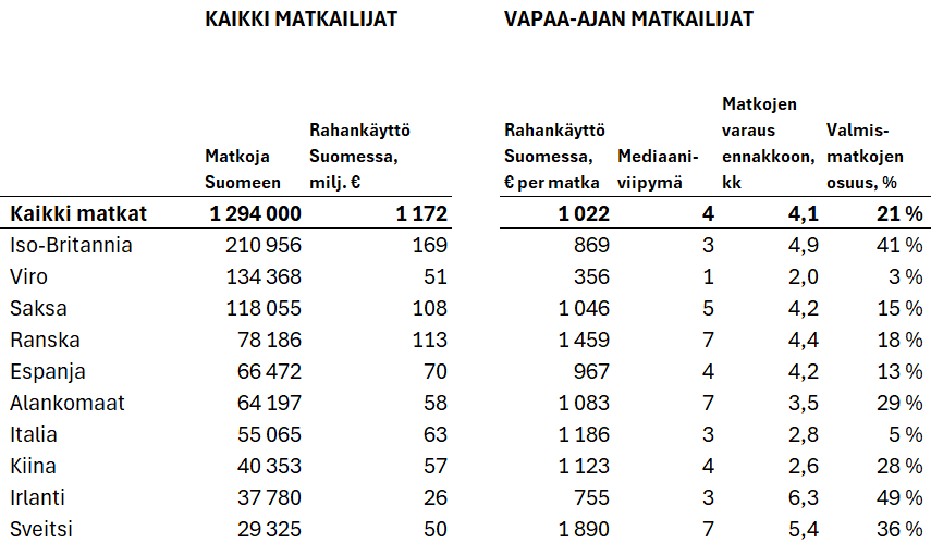 Matkailijamittari: Matkojen määrät, rahankäyttö ja matkustuskäyttäytyminen