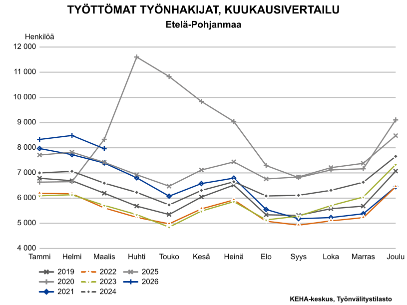 Etelä-Pohjanmaalla maaliskuun lopussa 7964 työtöntä työnhakijaa
