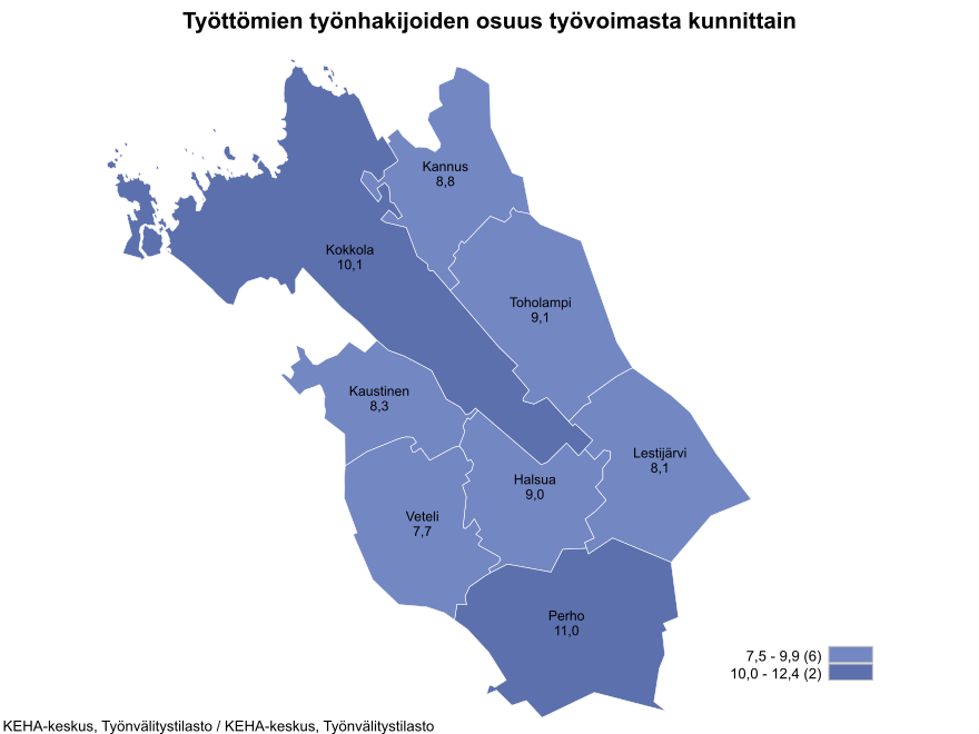Työttömyys alhaisinta Kaustisen seutukunnassa