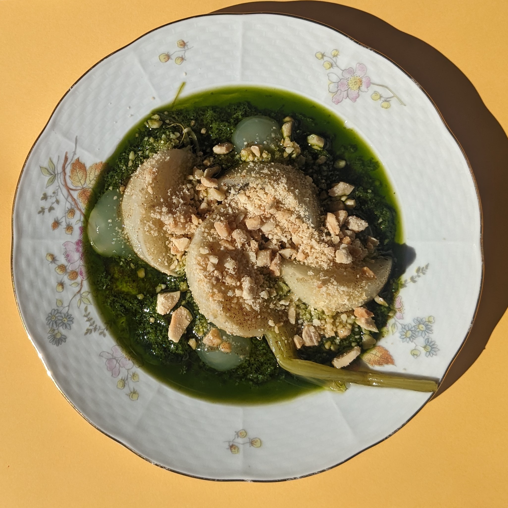 Bird liver mousse, lillet gel, radish and pistachio