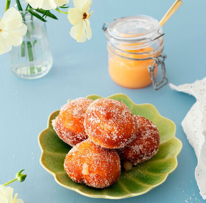 - Lemon curd -tahnalla täytetyt munkit