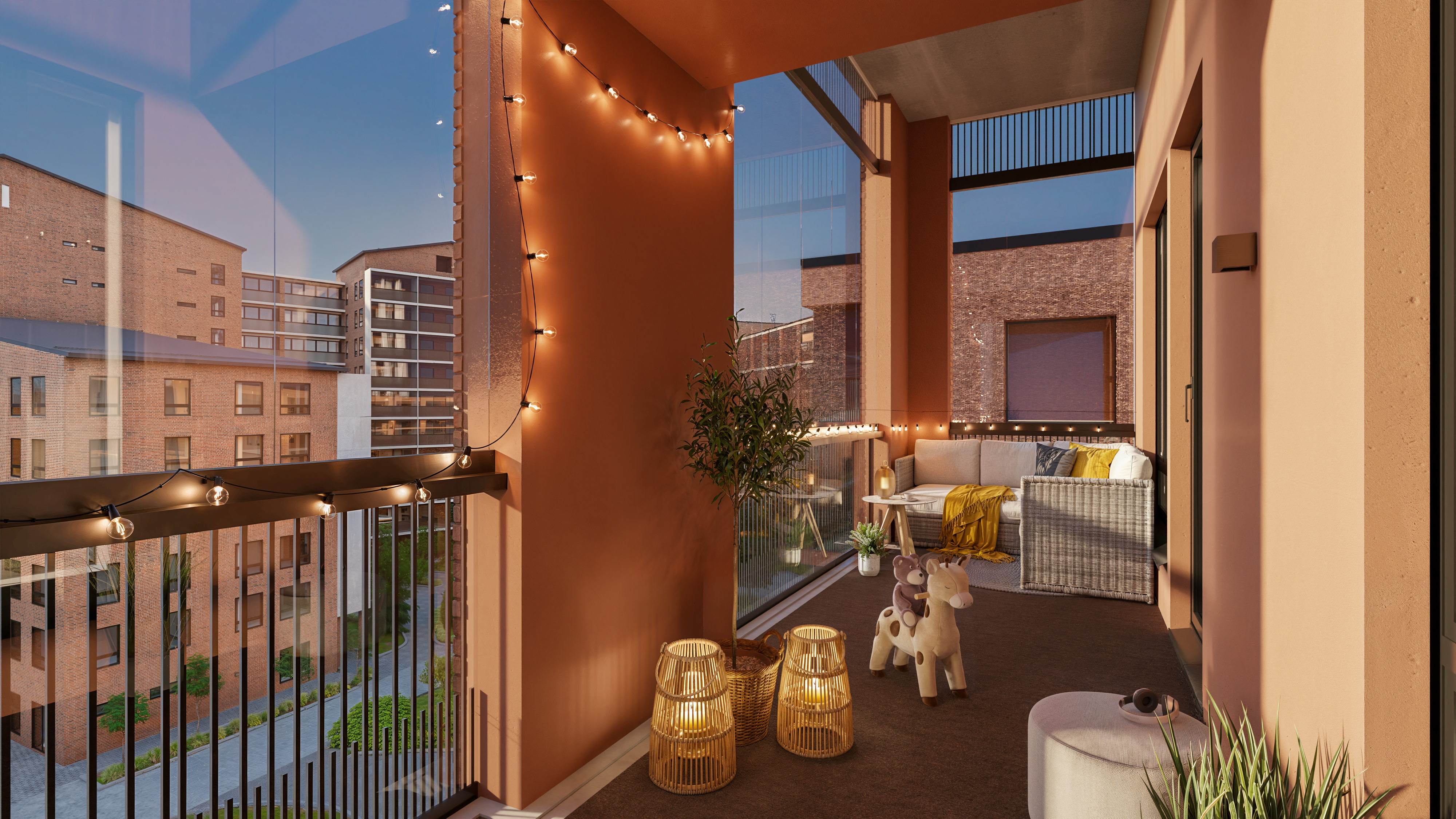 Espoon Luhtavillan kodit on suunniteltu valoisiksi ja pienetkin yksityiskohdat huomioiden. Lasitetut parvekkeet tuovat lisätilaa pitkälle syksyyn, ja korttelin yhteispihasta muodostuu asukkaiden yhteinen vehreä olohuone. Yhteispihan suunnittelussa on kiinnitetty huomiota luonnonmukaisuuteen ja hulevesien käsittelyyn.