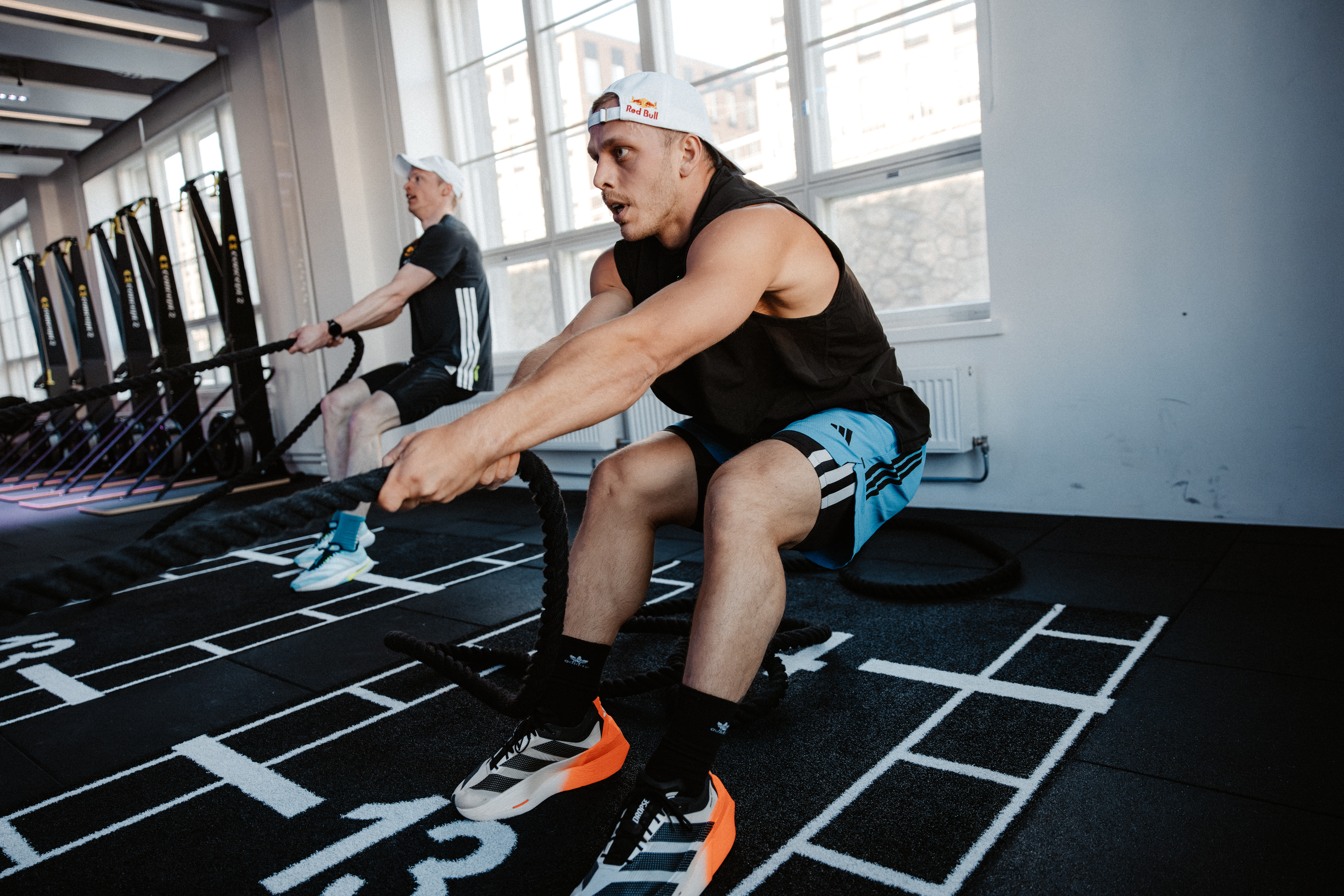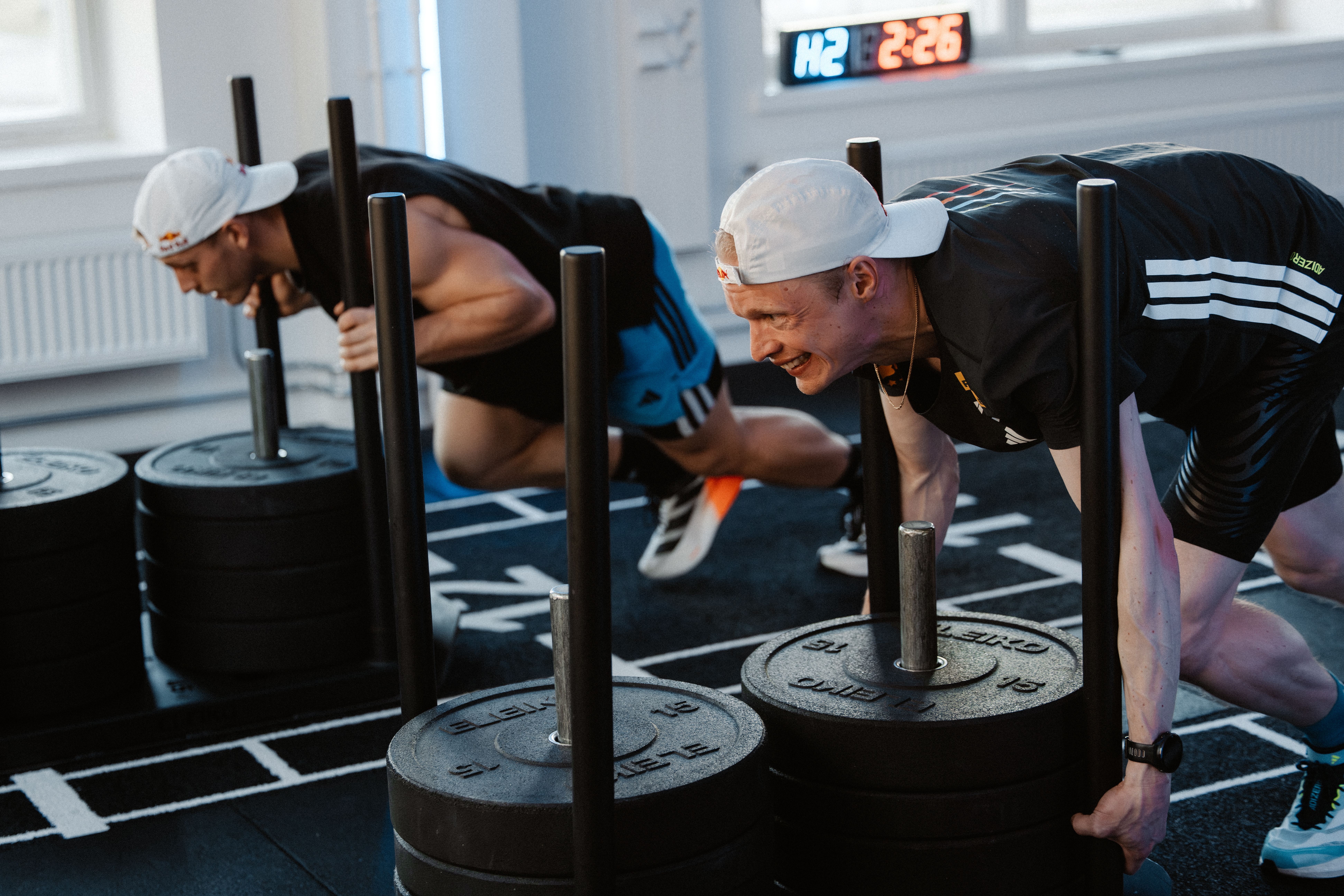 Jo ensimmäiset treenit tekivät selväksi, että HYROX vaatii monipuolista fyysistä suorituskykyä. Kaksikko näkee vahvuuksiensa täydentävän toisiaan, mutta myöntää, että mukavuusalueelta on kertaheitolla siirrytty pois. Työnjako rakentuu luontevasti Niskasen kestävyyspohjan ja Kosken voimapuolen ympärille.