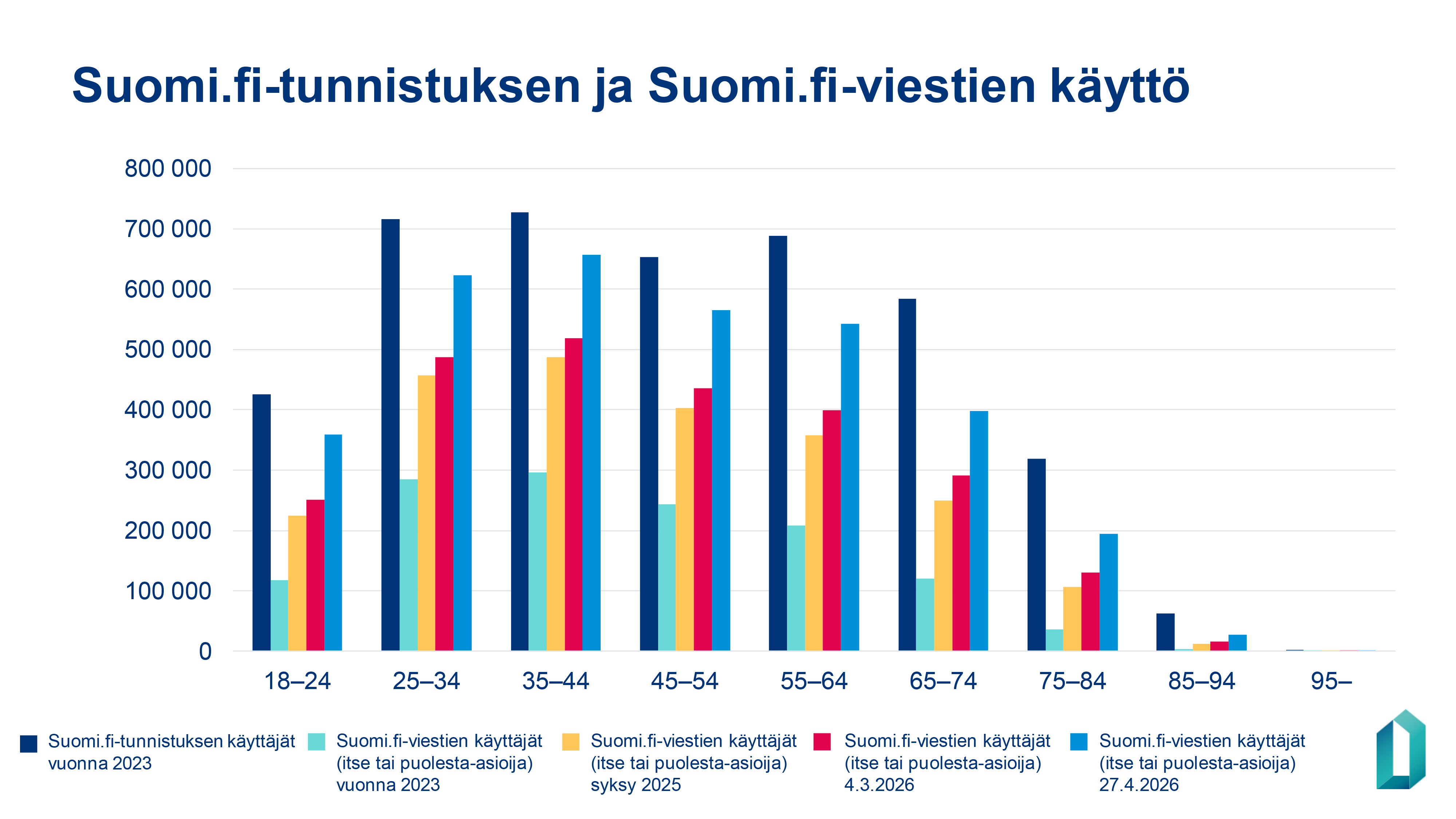 The number of Suomi.fi Messages users has increased by more than 800 000 users in two weeks. At the moment, 3.5 million people already use Suomi.fi Messages. This is due to a legislative amendment that entered into force in mid-April. As a result, users of the authorities’ digital services have been guided to activate Suomi.fi Messages when they identify themself in an authority’s e-service.