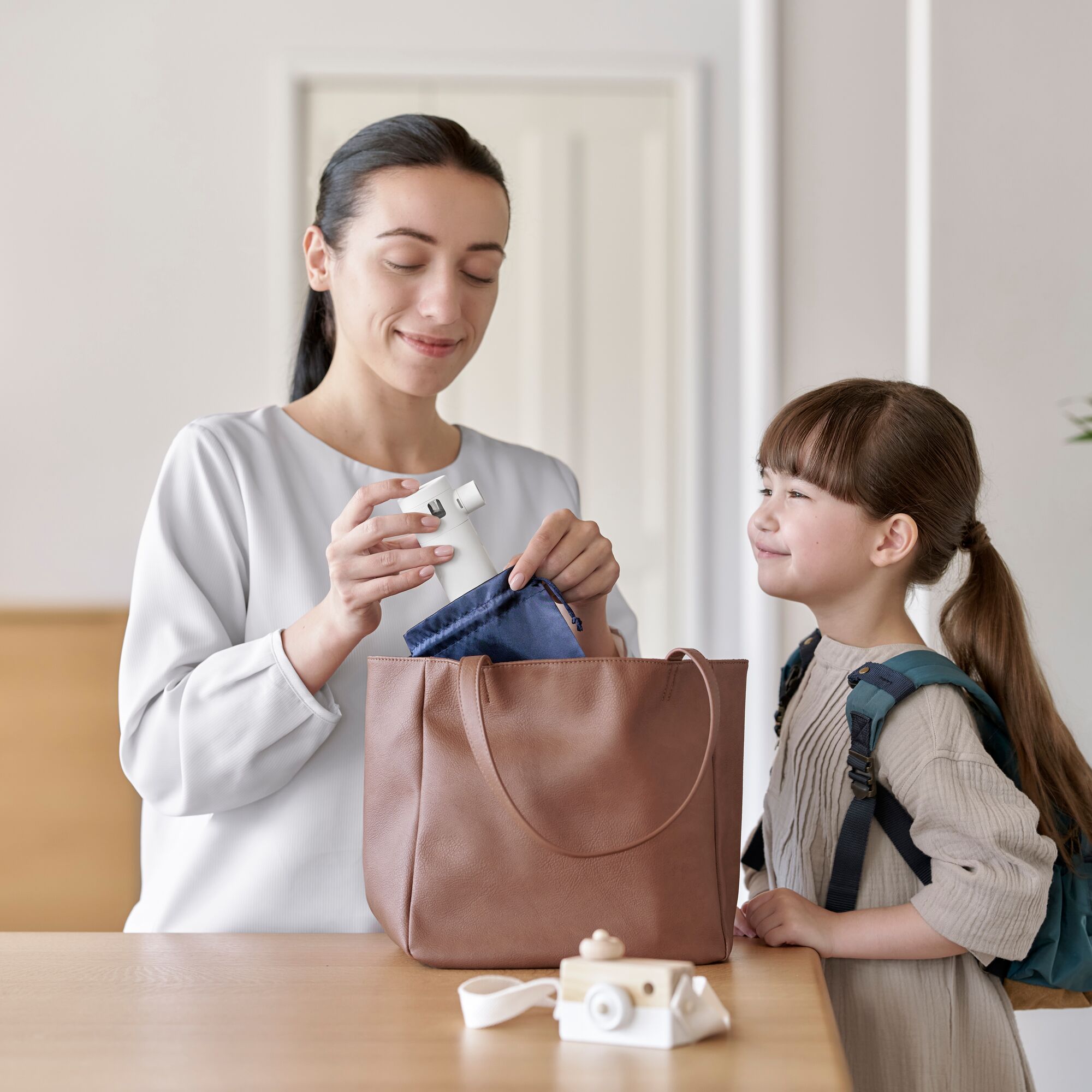 Hiljainen ja kannettava. Mahtuu käteen tai laukkuun, USB-C-lataus ja hiljainen toimintaääni, jonka ansiosta sumutinta voi käyttää huomaamattomasti myös yöaikaan.