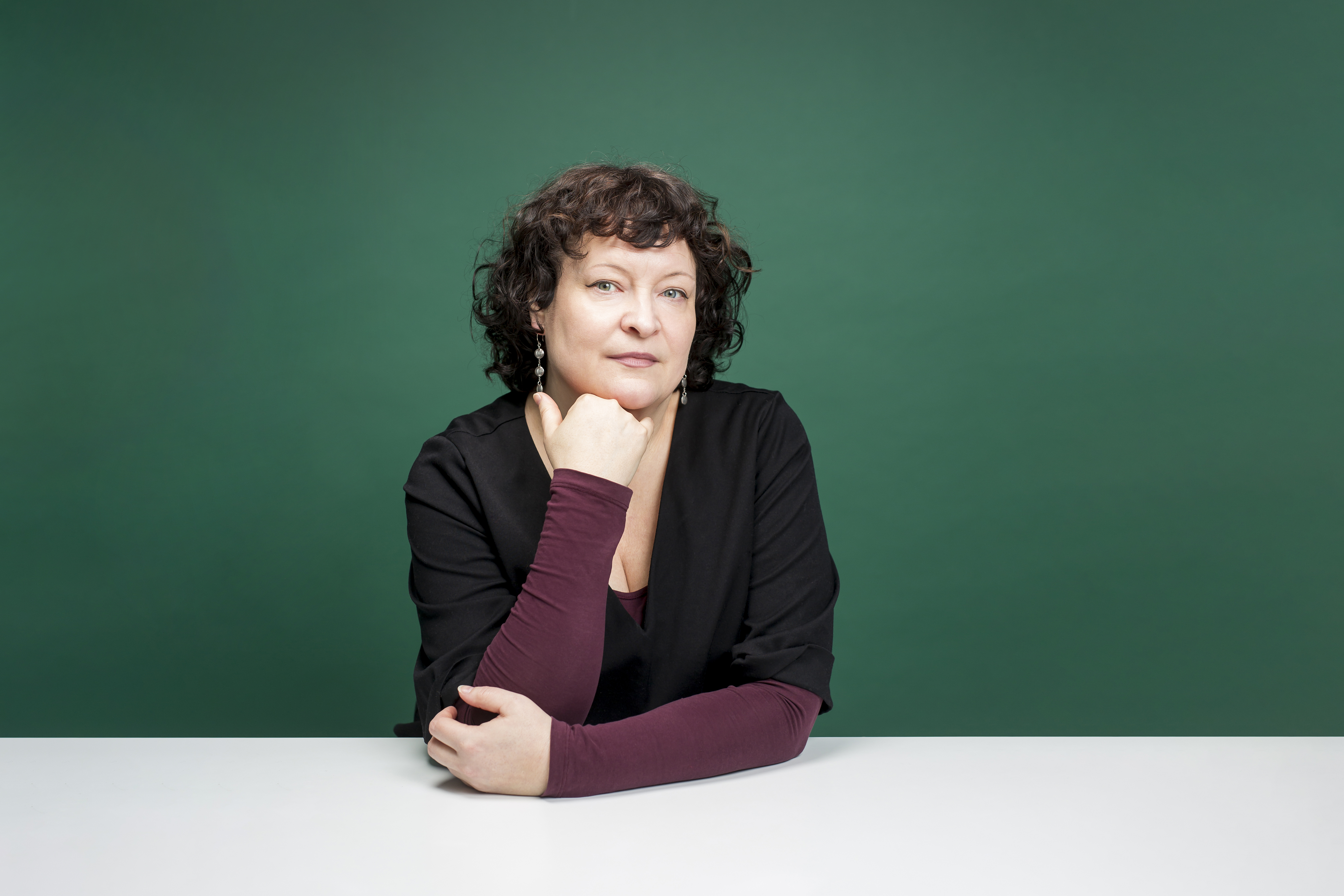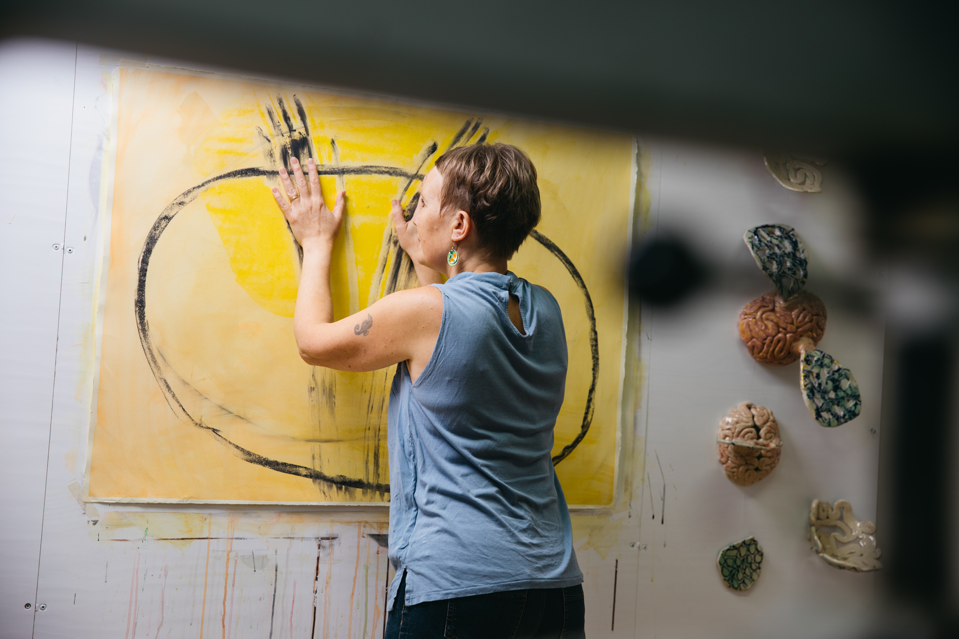 Kuvataiteilija Lotta Leka työhuoneellaan. Kuva: Jaska Poikonen © Kuvasto ja oikeudenhaltijat.